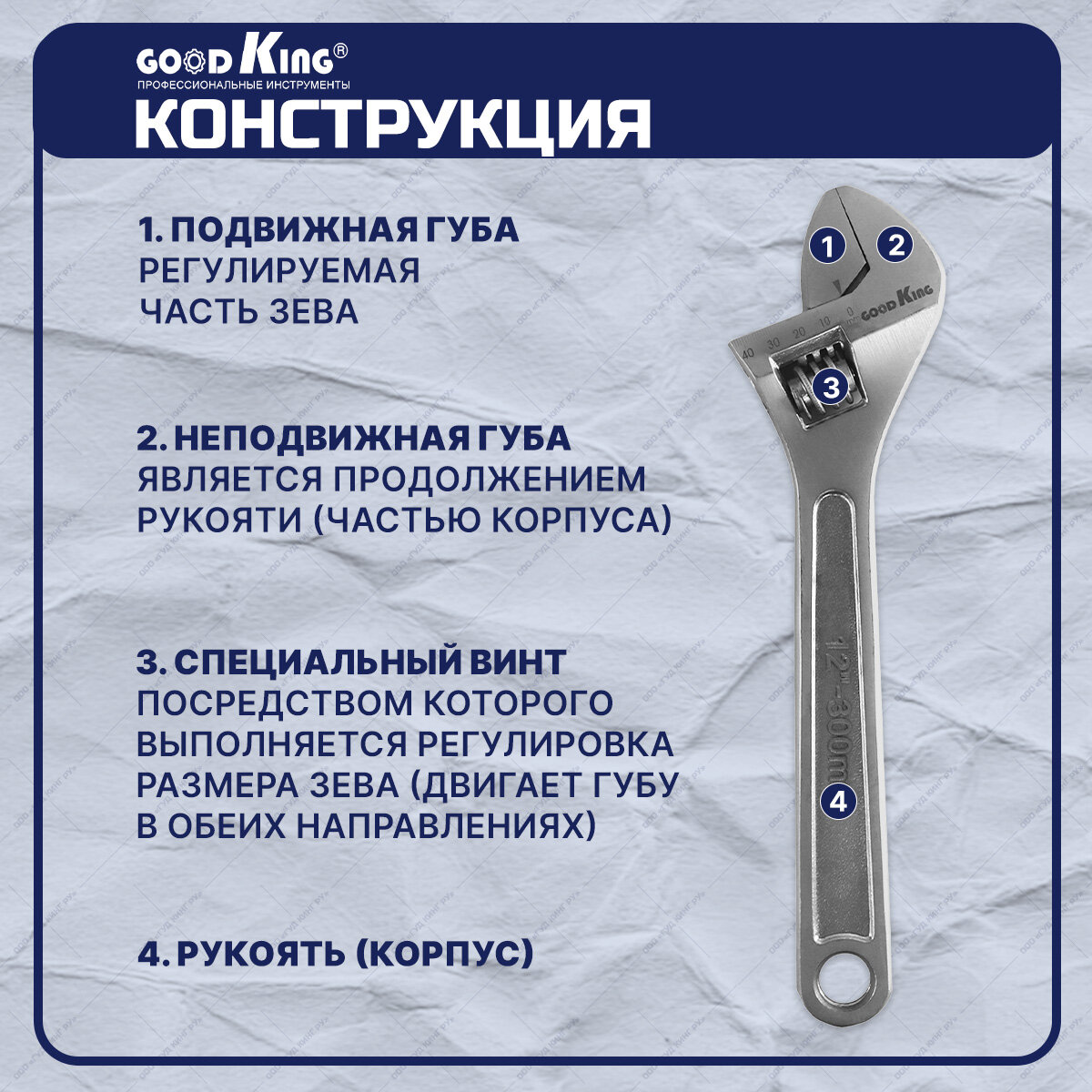 Разводной ключ для сантехники GOODKING KR-12 12" 300 мм информация: