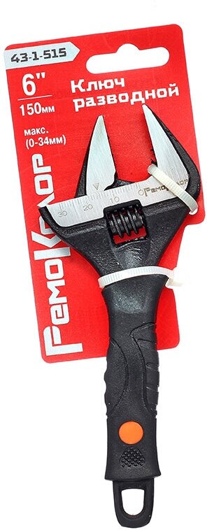 Отзывы на Ключ разводной Ремоколор двухкомпонентная рукоятка, тонкие губки, 150мм (макс 0-34мм), 43-1-515