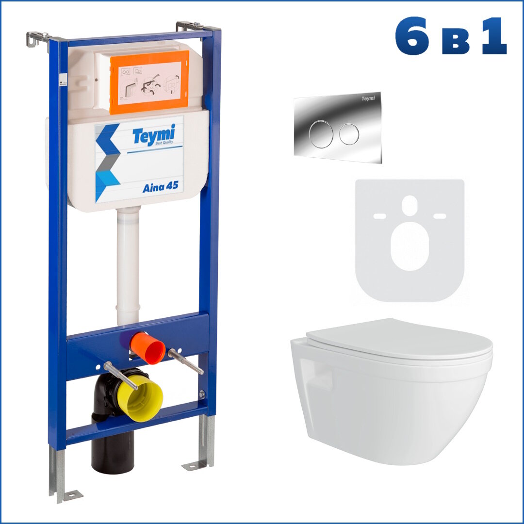 Готовое решение Teymi: Инсталляция Aina 45 + клавиша смыва Lina хром + унитаз Vitra F01362 информация: