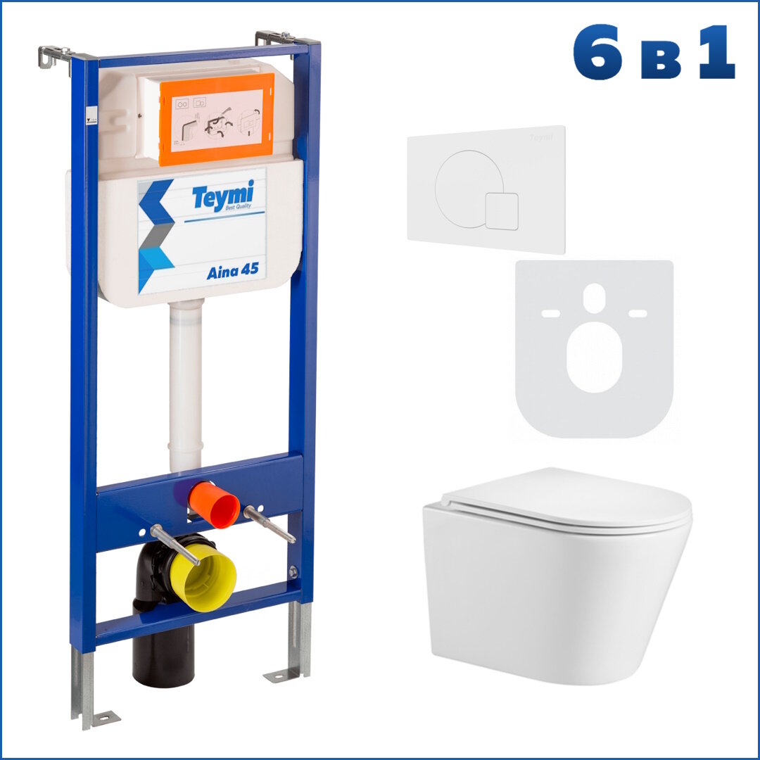 Комплект Teymi "Готовое решение": Инсталляция Aina 52 + клавиша смыва Ellie + унитаз Solli