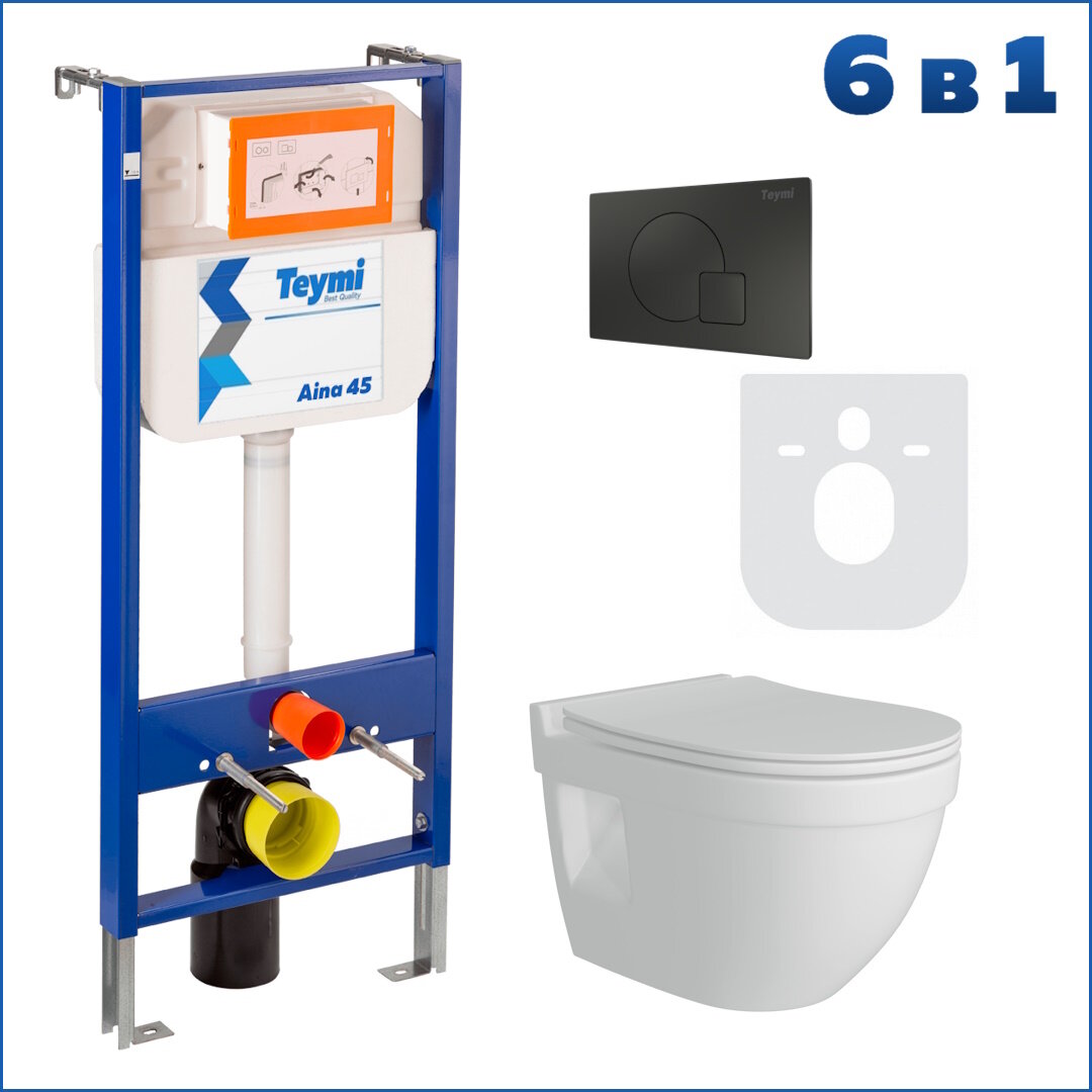 10 цен на Готовое решение Teymi: Инсталляция Aina 45 + клавиша смыва Ellie черная + унитаз Vitra Pro F01358