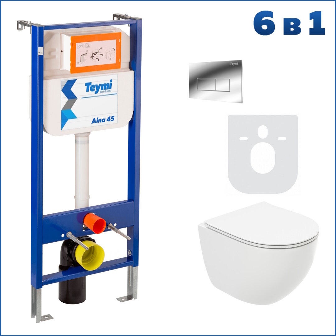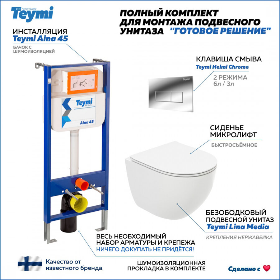 Готовое решение Teymi: Инсталляция Aina 45 + клавиша смыва Helmi хром + унитаз Lina Media F01270 информация: