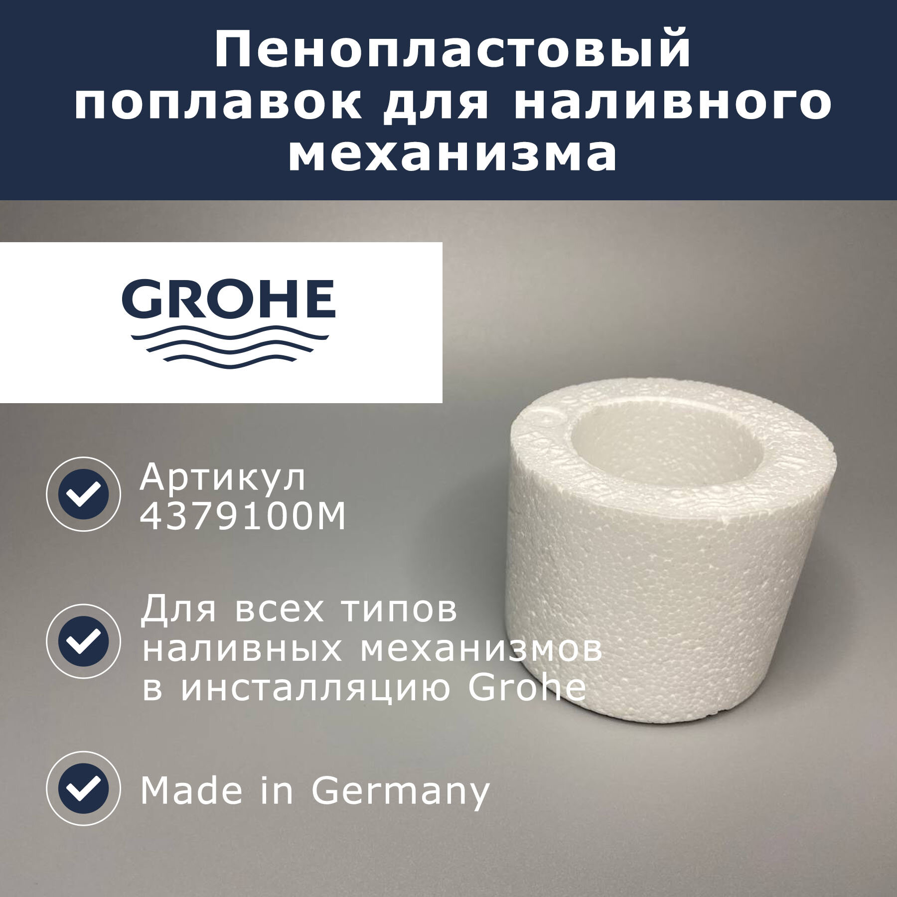 10 цен на Пенопластовый поплавок для наливного механизма Grohe (4379100M - 1шт)