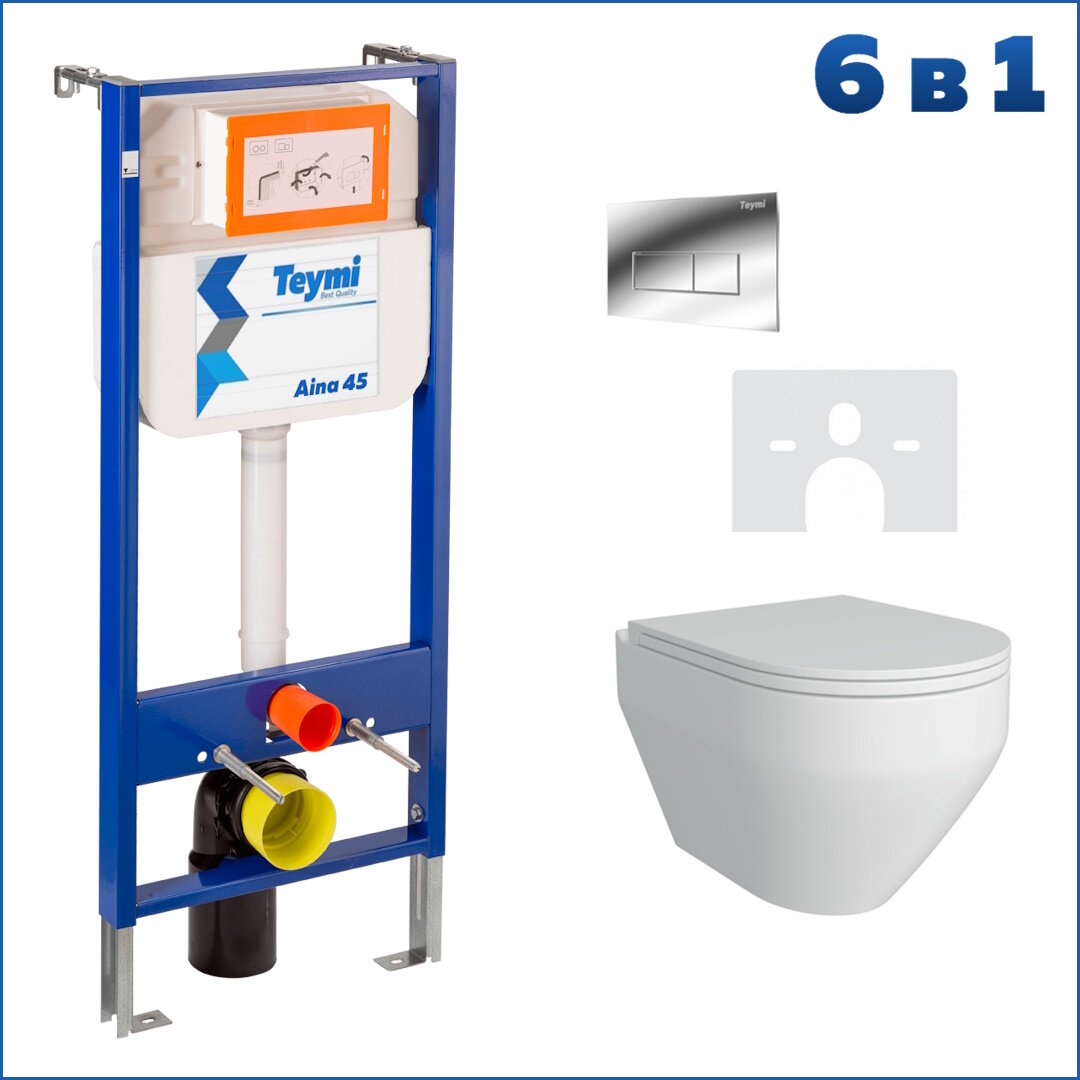 Готовое решение Teymi: Инсталляция Aina 45 + клавиша смыва Helmi хром + унитаз Demi F01375 информация: