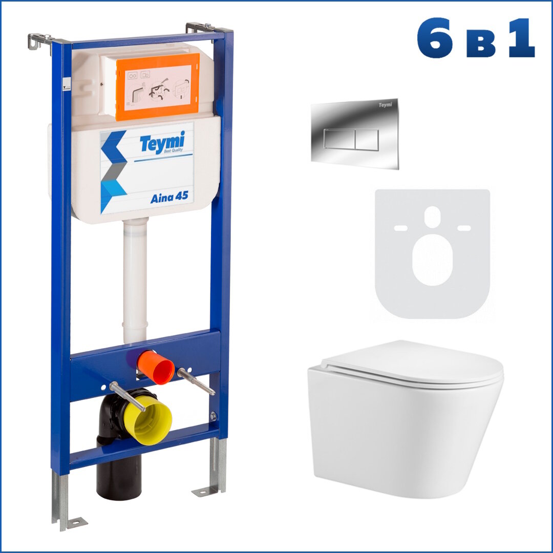 Готовое решение Teymi: Инсталляция Aina 45 + клавиша смыва Helmi хром + унитаз Solli F01180 информация: