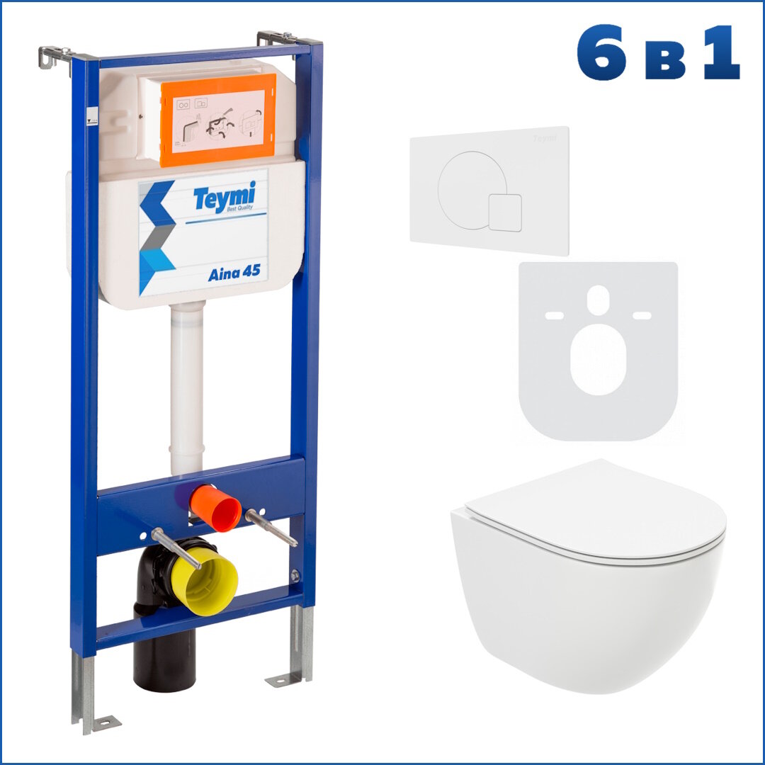 Комплект Teymi "Готовое решение": Инсталляция Aina 45 + клавиша смыва Ellie белая + унитаз Lina Media F01284 информация: