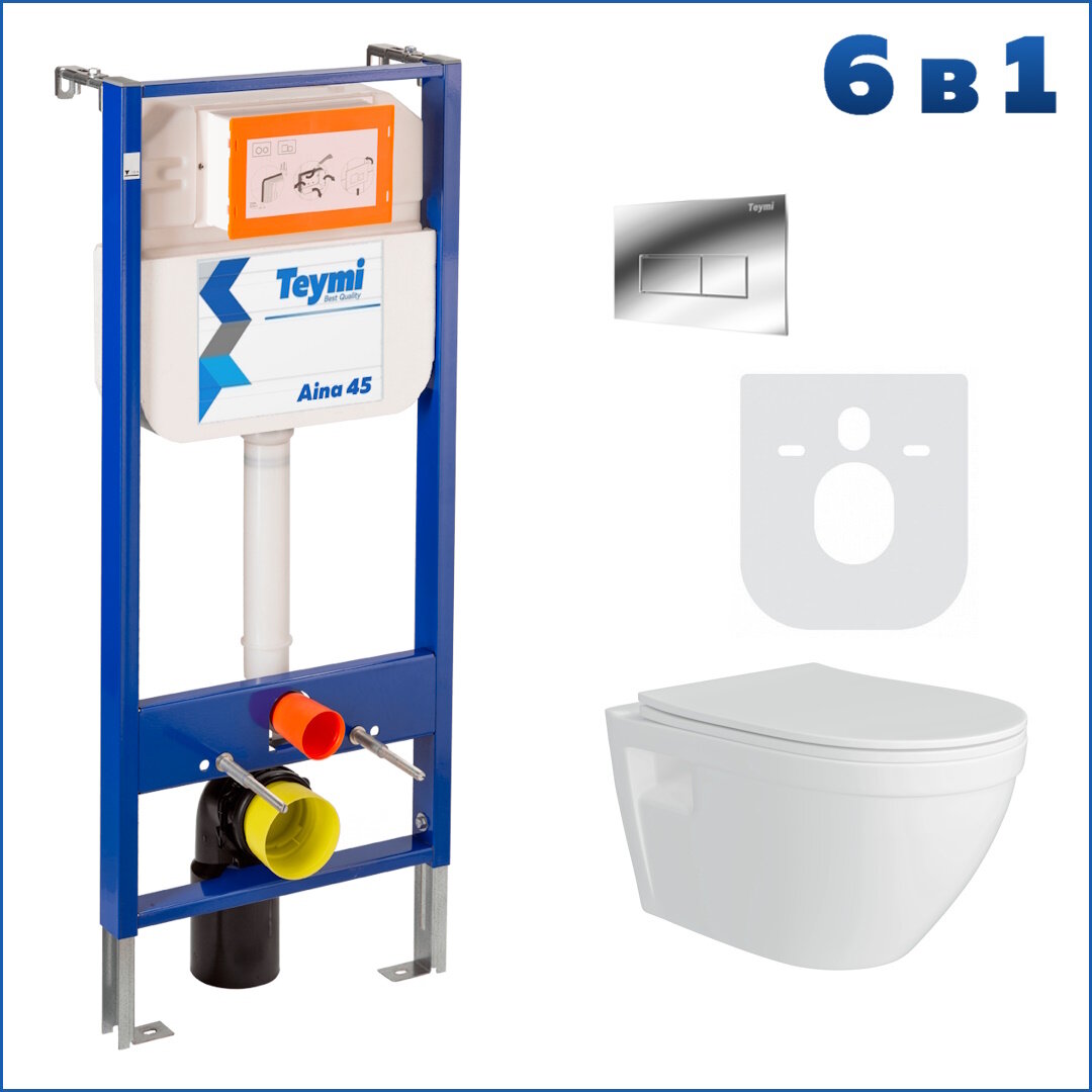 10 цен на Готовое решение Teymi: Инсталляция Aina 45 + клавиша смыва Helmi хром + унитаз Vitra F01360