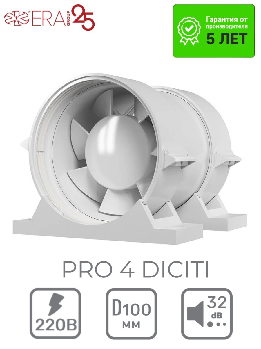 Вентилятор вытяжной канальный Diciti PRO 4 100 мм в ванную, белый информация: