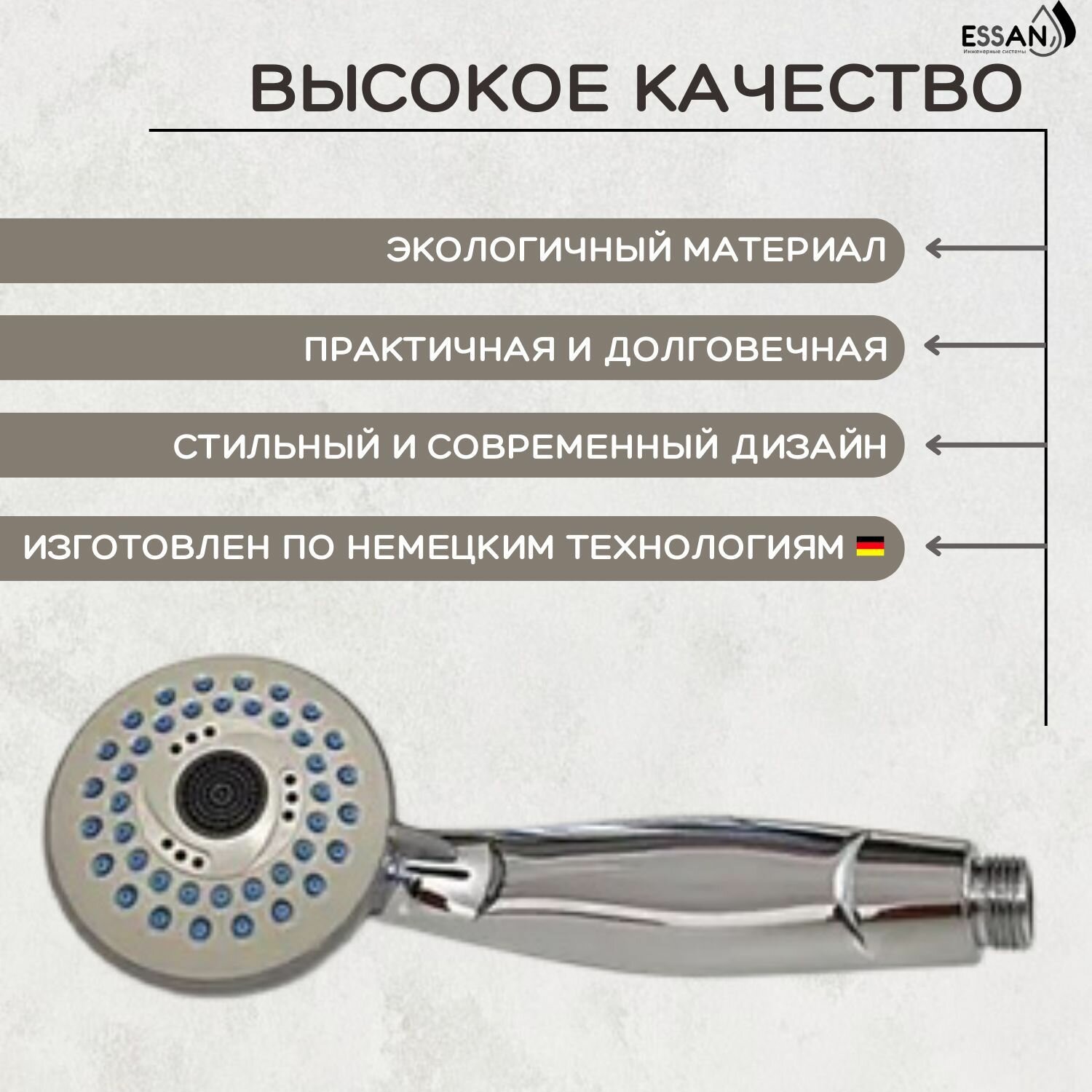 Отзывы на Лейка для душа, пластиковая ESSAN PLATING PJ хром 3 режима НФ-77805272, насадка для душевого шланга