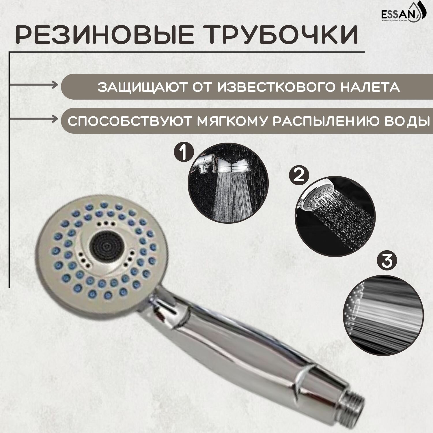 Лейка для душа, пластиковая ESSAN PLATING PJ хром 3 режима НФ-77805272, насадка для душевого шланга информация: