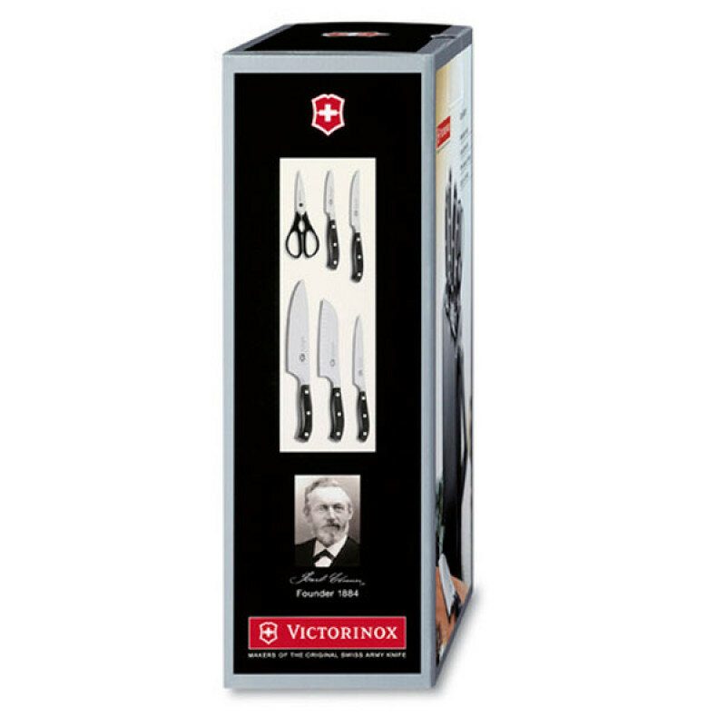 Набор VICTORINOX из 6 кованых кухонных предметов: 5 ножей и ножницы, в подставке из бука 7.7243.6