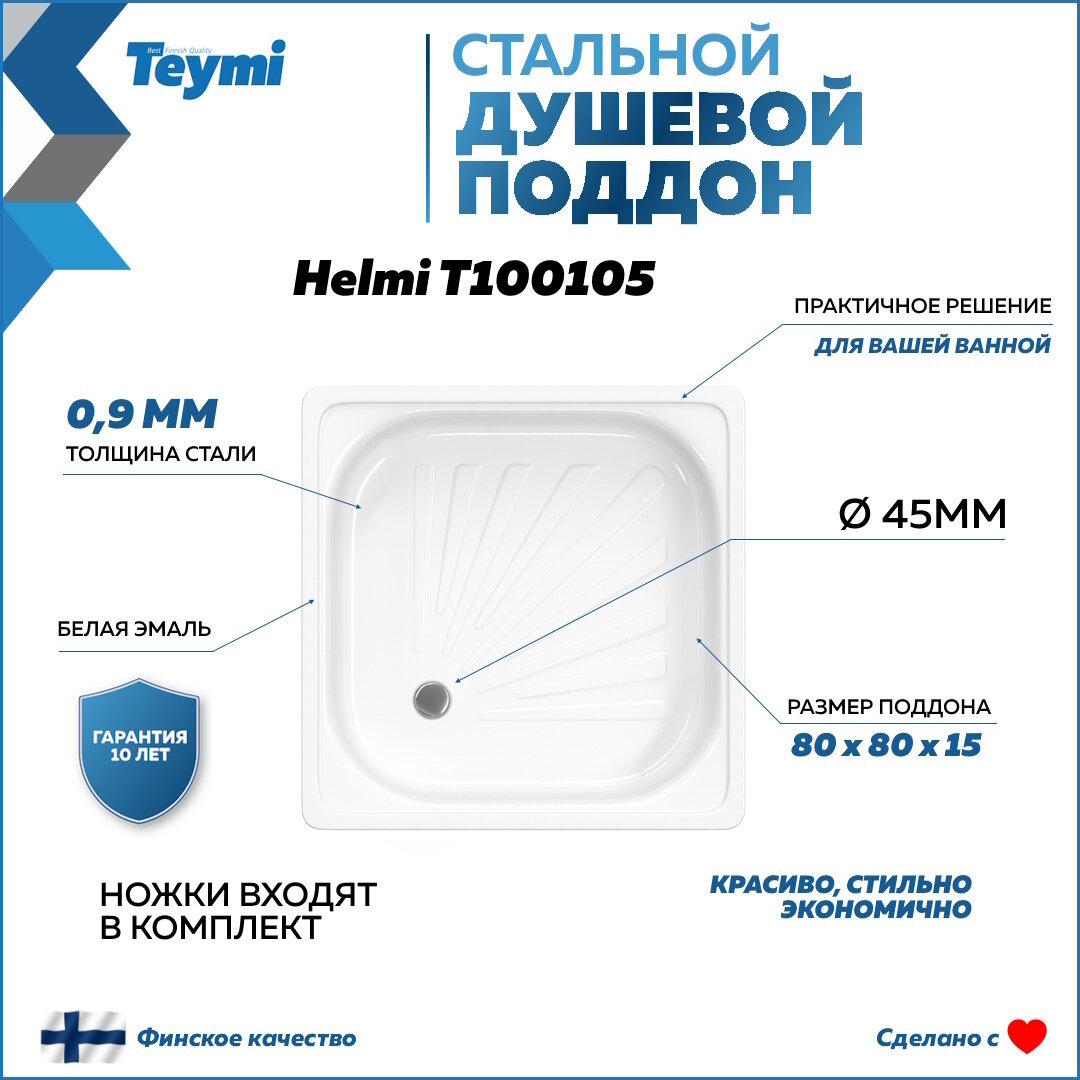 Отзывы на Комплект 2 в 1: Душевой поддон Teymi Helmi 80х80 сталь + ножки для душевого поддона универсальные F01438