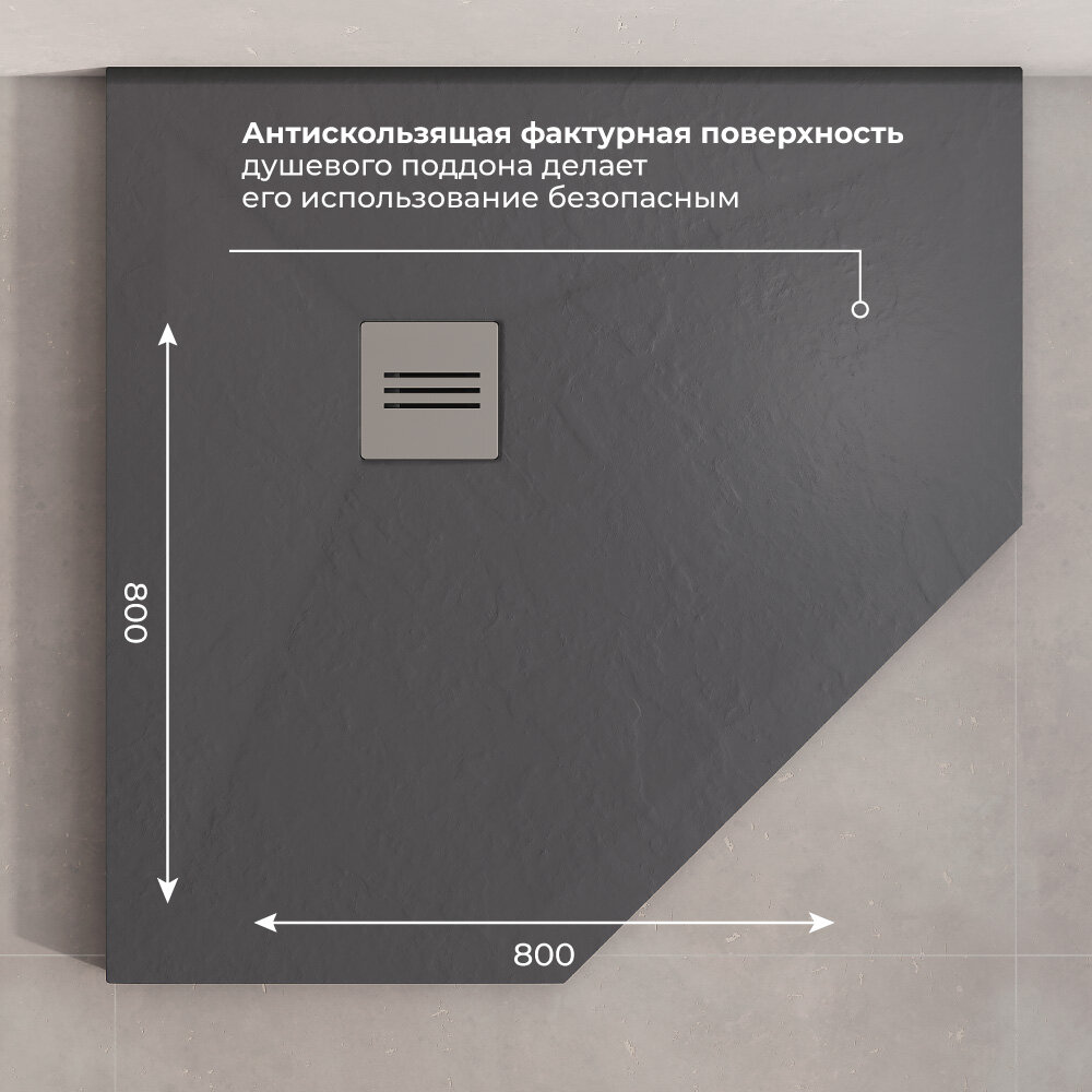 Премиальный поддон для душа INRAIN из искусственного камня трапеция Т-80х80x3см Графит с решеткой на сифон 17 454 ₽