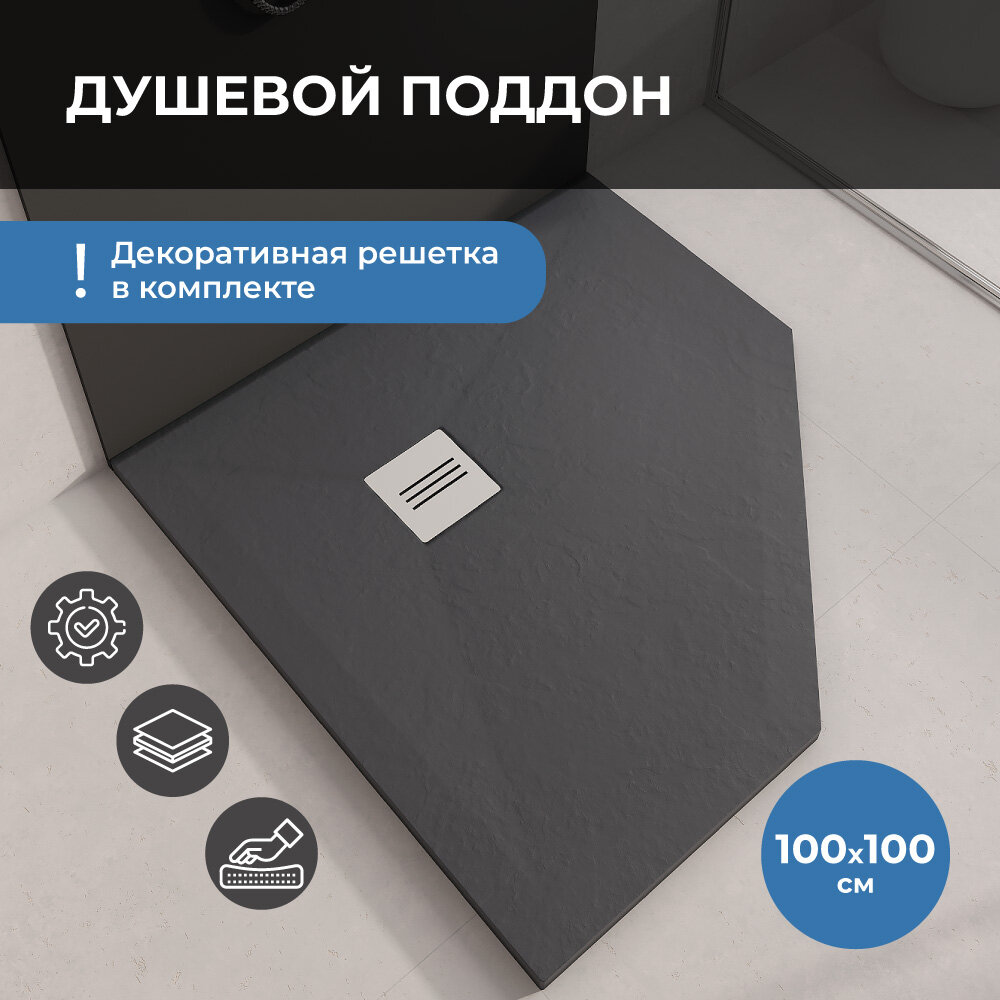 Премиальный поддон для душа INRAIN из искусственного камня трапеция Т-100х100х3см Графит с решеткой на сифон 27 905 ₽