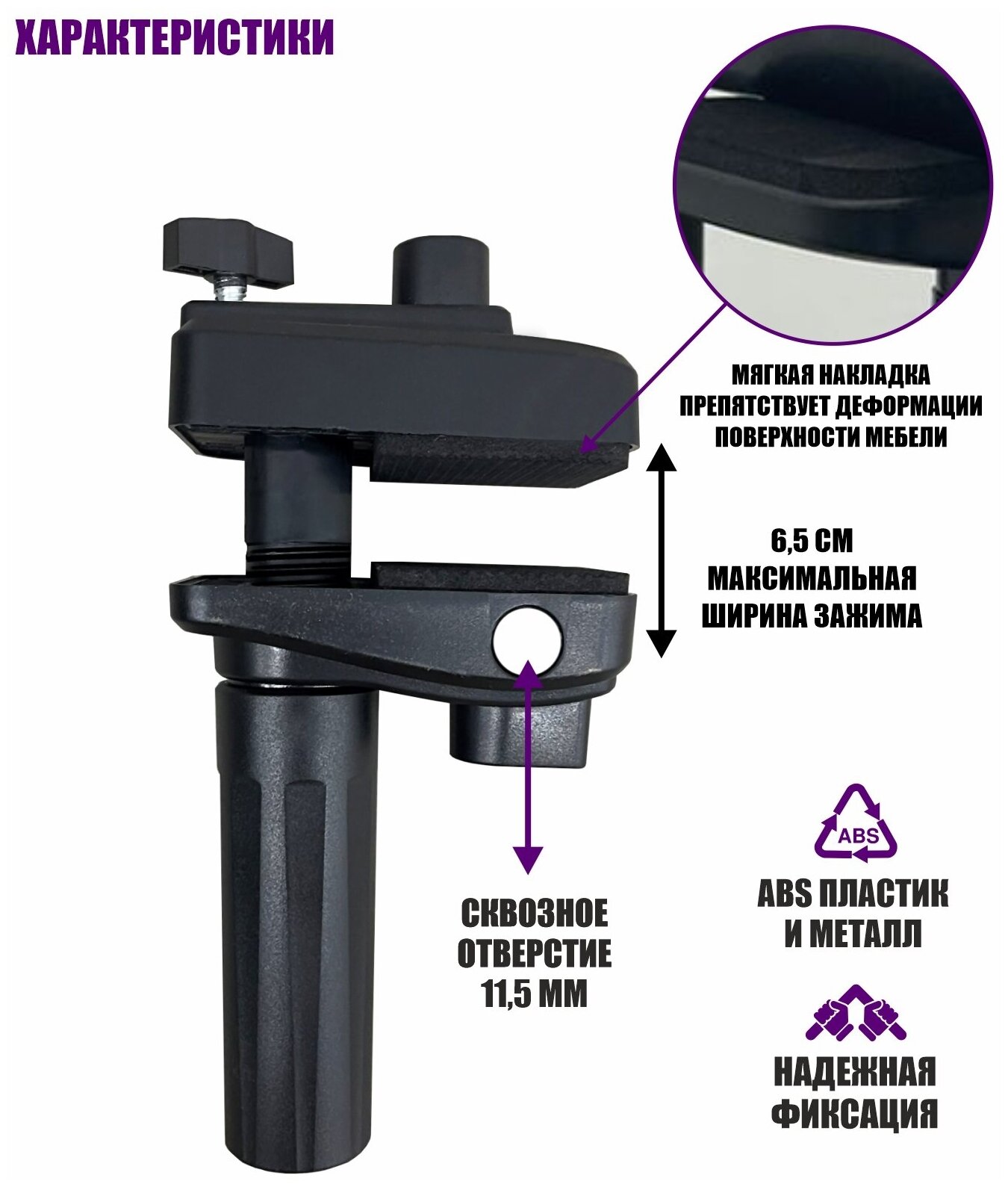 Пластиковая струбцина с 4 отверстиями под пантограф для крепления к столу до 6,5 см информация:
