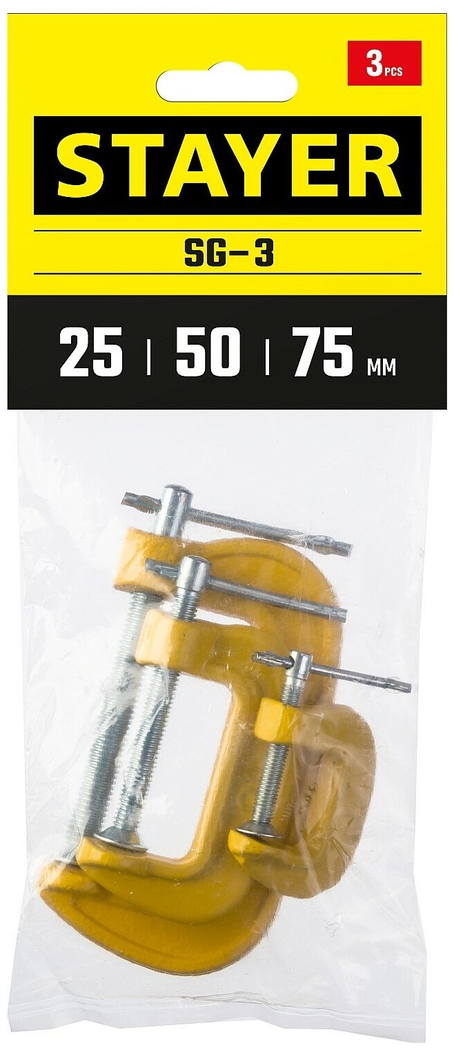 STAYER SG-3, 25-50-75 мм, 3 шт, набор чугунных струбцин G (3212-H3) информация: