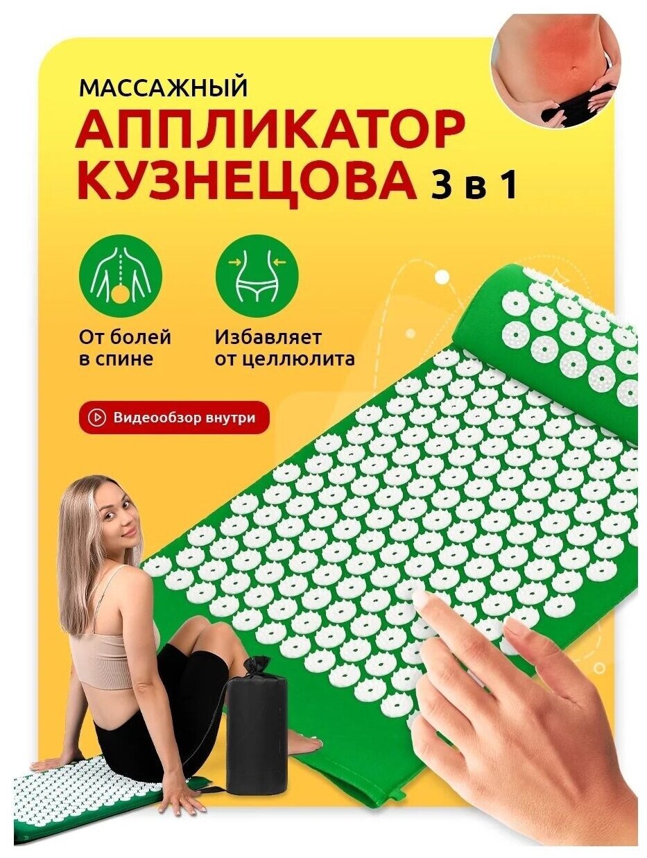 массажный набор Аппликатор Кузнецова 68x43 см, зеленый информация:
