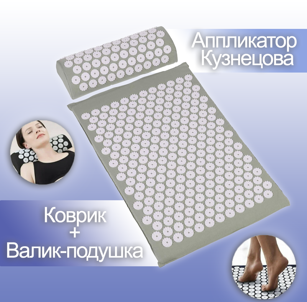 10 цен на Аппликатор Кузнецова / Массажный коврик с валиком, набор 2 предмета / Игольчатый акупунктурный коврик