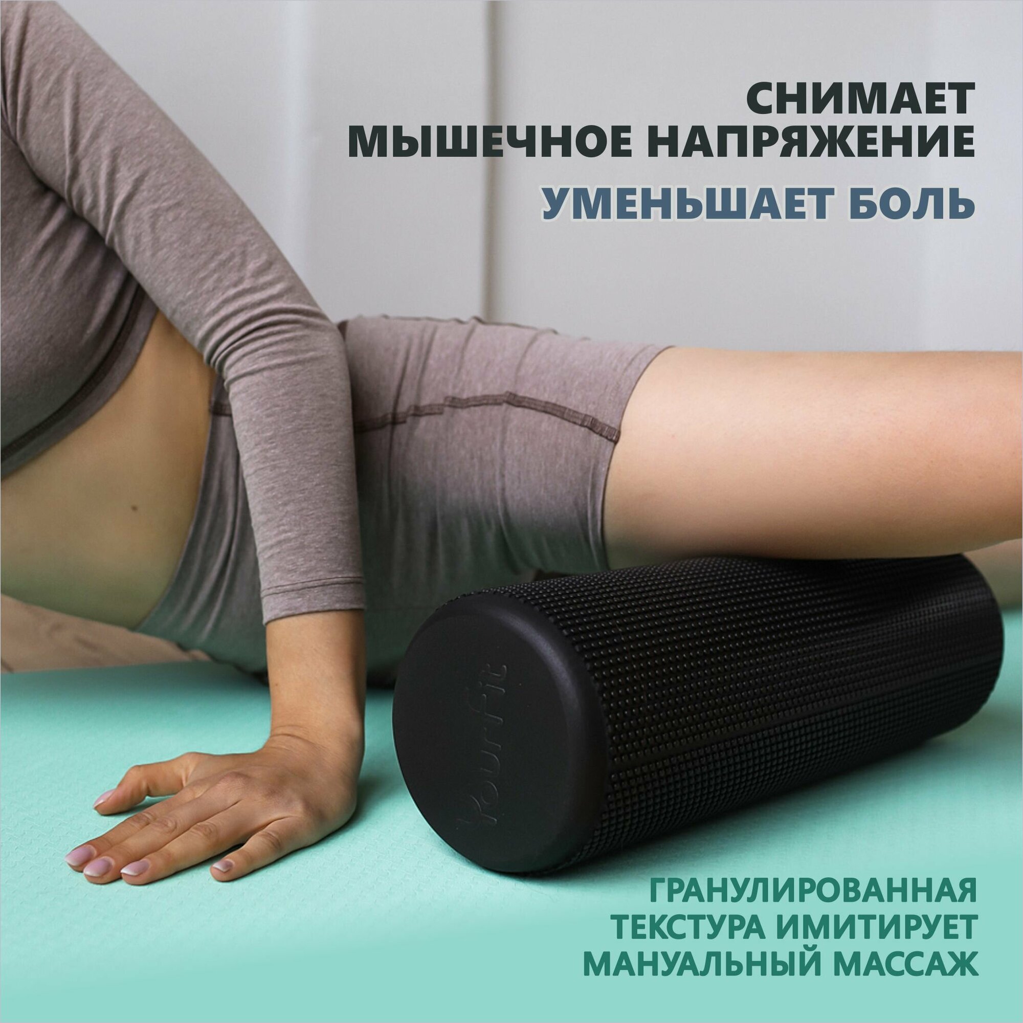 Мфр ролик, Валик для спины массажный, ролл спортивный YourFit, 45 см, бирюзовый 1 105 ₽