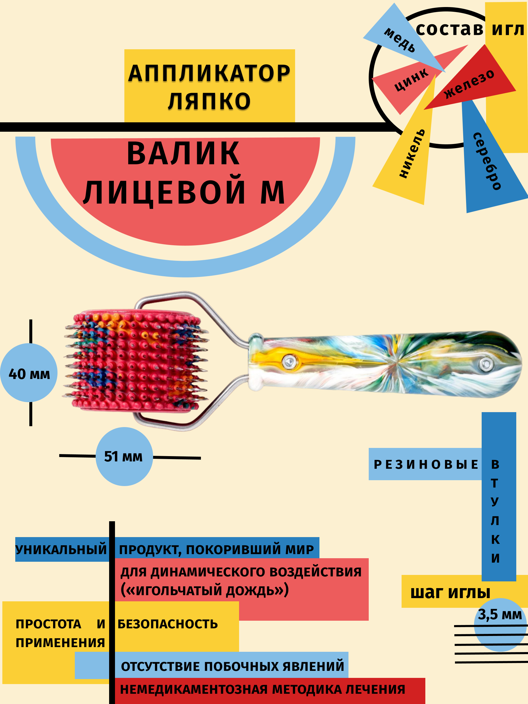 Аппликатор Ляпко Валик лицевой-М шаг игл 3,5 мм красный (диаметр-51 мм,ширина-40 мм) информация: