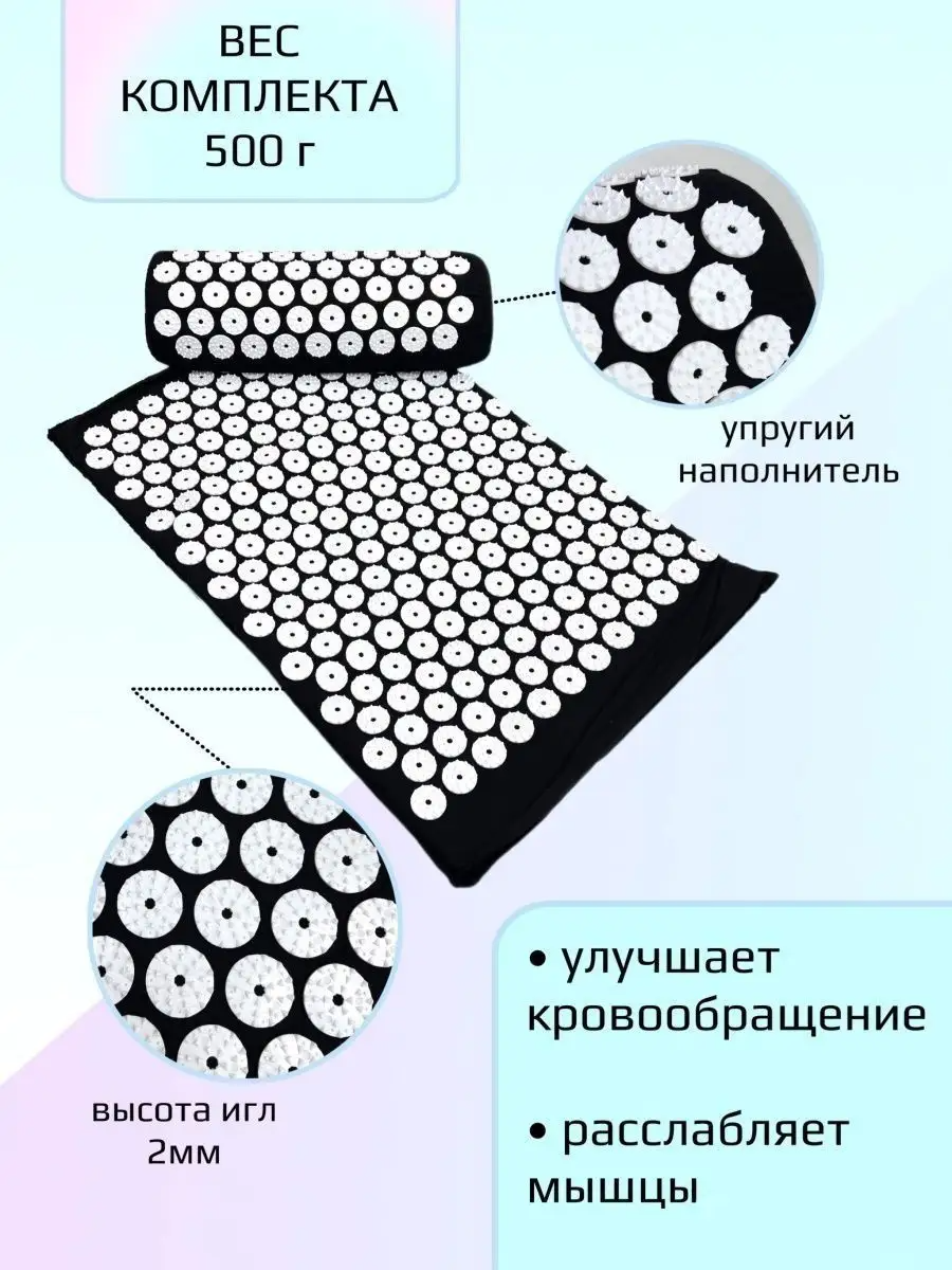 10 цен на Массажный коврик Nesh. Аппликатор Кузнецова. "Апликатор Кузнецова" Игольчатый мат для Йоги + Валик + Сумка. Акупунктурный комплект 3 в 1. Черный