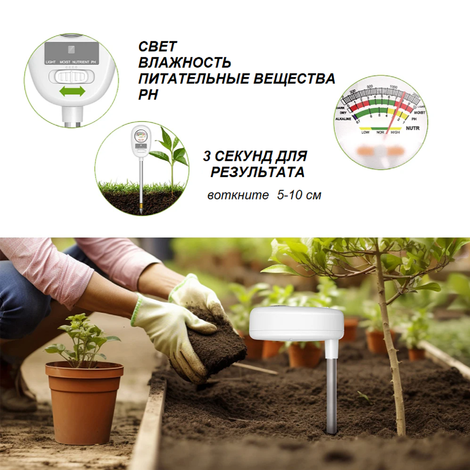 10 цен на Измеритель почвы 4в1 - pH, влажность, освещенность, плодородность SGS06