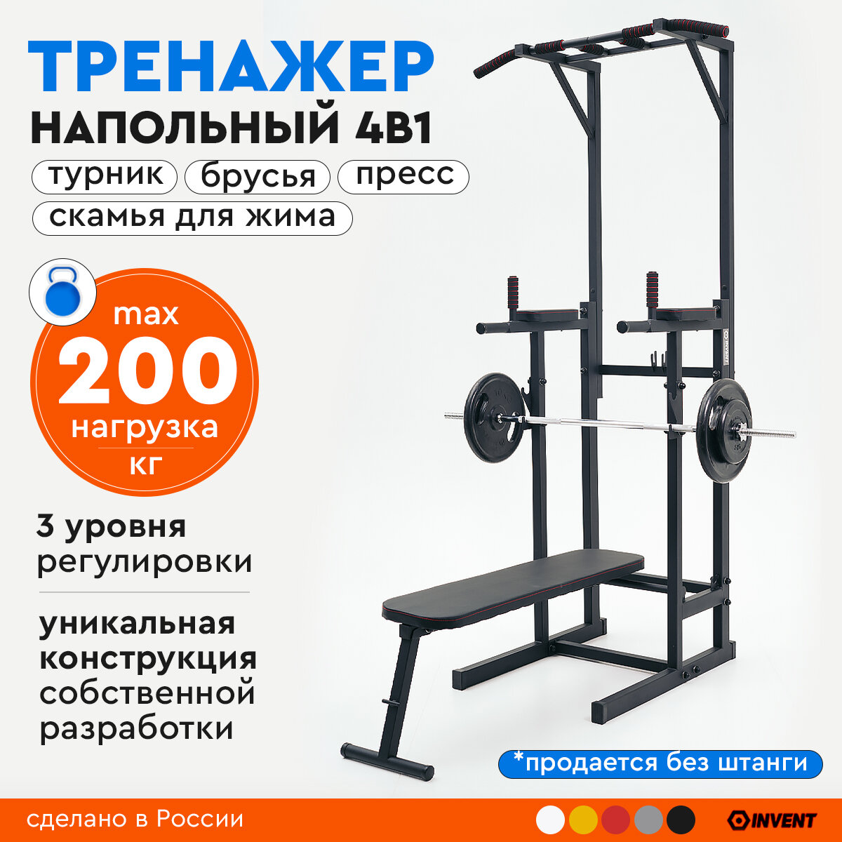 Напольный турник со скамьей + брусья + пресс INVENT TN-03 информация: