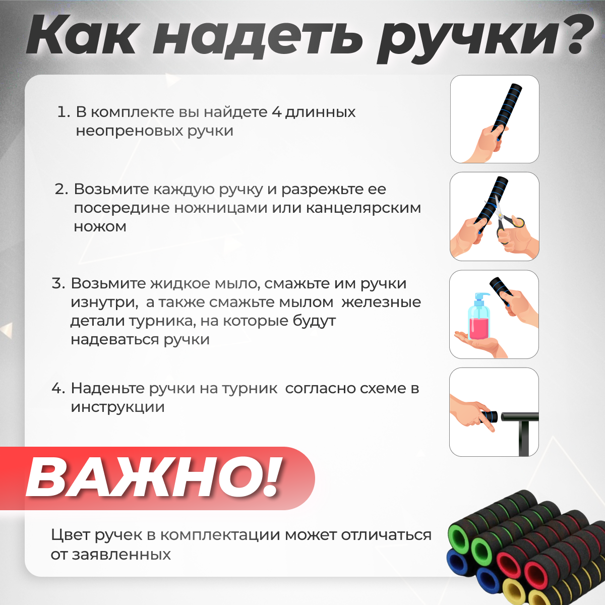 | Дополнительные функции | мягкие подушки / противоскользящие ручки / работа с прессом / разные положения для хвата / ручки для хвата |
