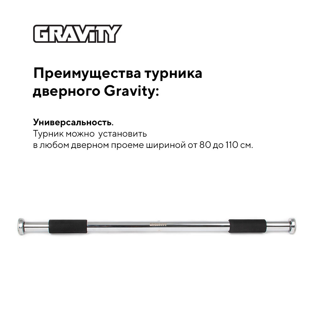 Турник дверной (в дверной проем) Gravity, размер 80-110см, черный, макс. вес пользователя 100кг информация: