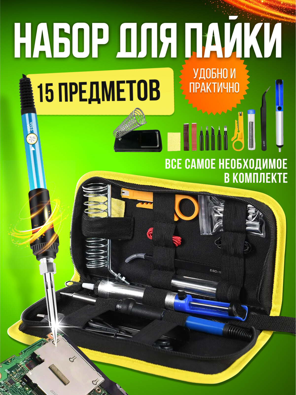 Электрический паяльник с регулируемой температурой, 60 Вт, и набором для пайки
