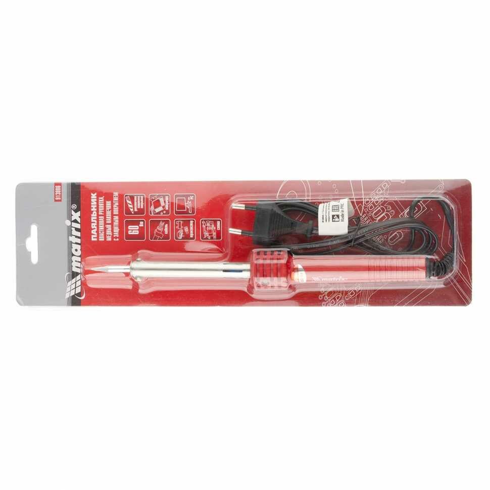 MATRIX Паяльник, пластиковая рукоятка, медный наконечник с долговечным защитным покрытием, 220 В, 60 W Matrix, ( 913006 ) информация: