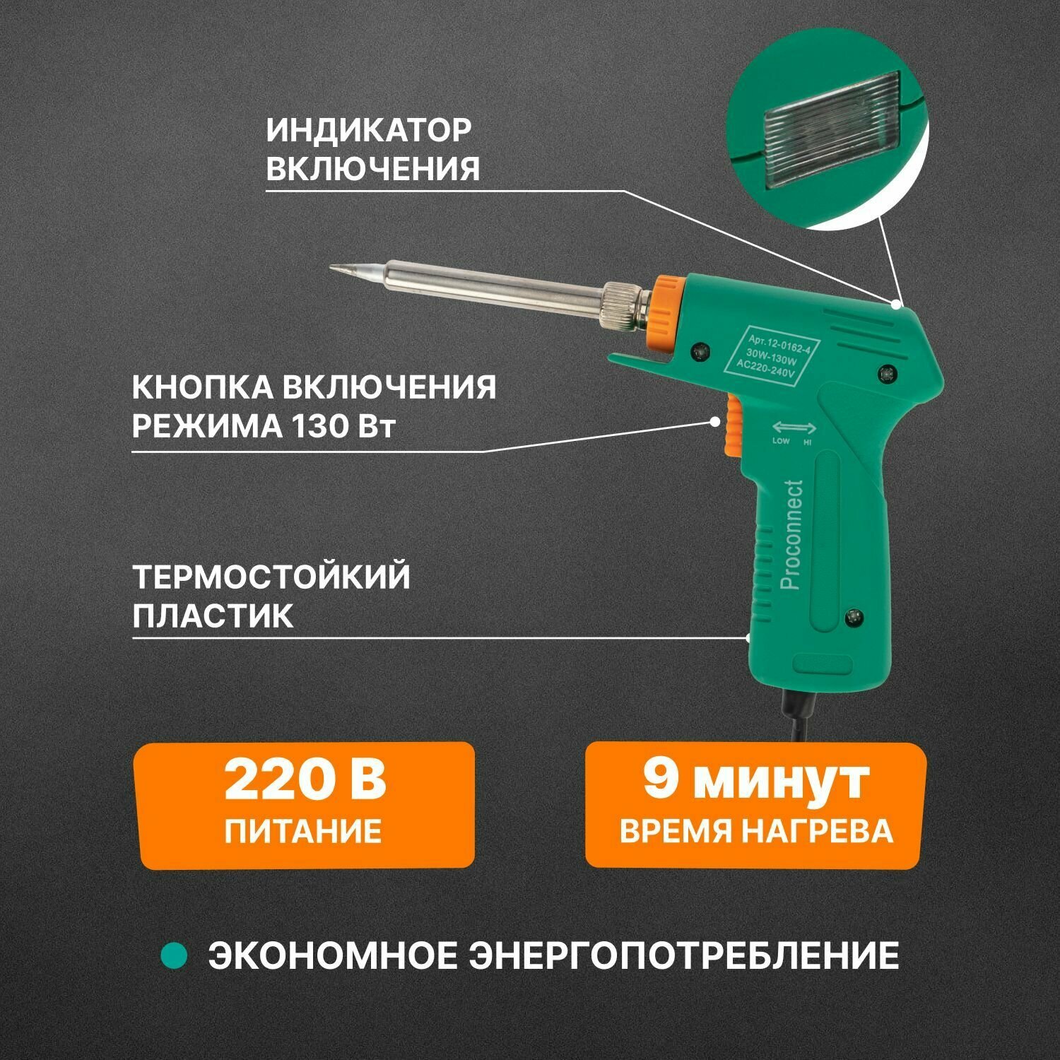 Паяльник электрический пистолет (2 мощности) для ручного монтажа 30-130 Вт информация: