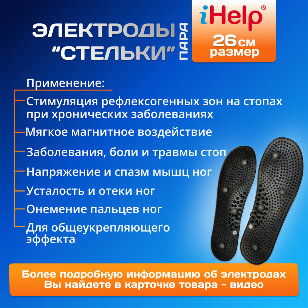 | Комплектность | Стельки-электроды iHelp с магнитами 2 поколения - 2 шт., Инструкция по применению |