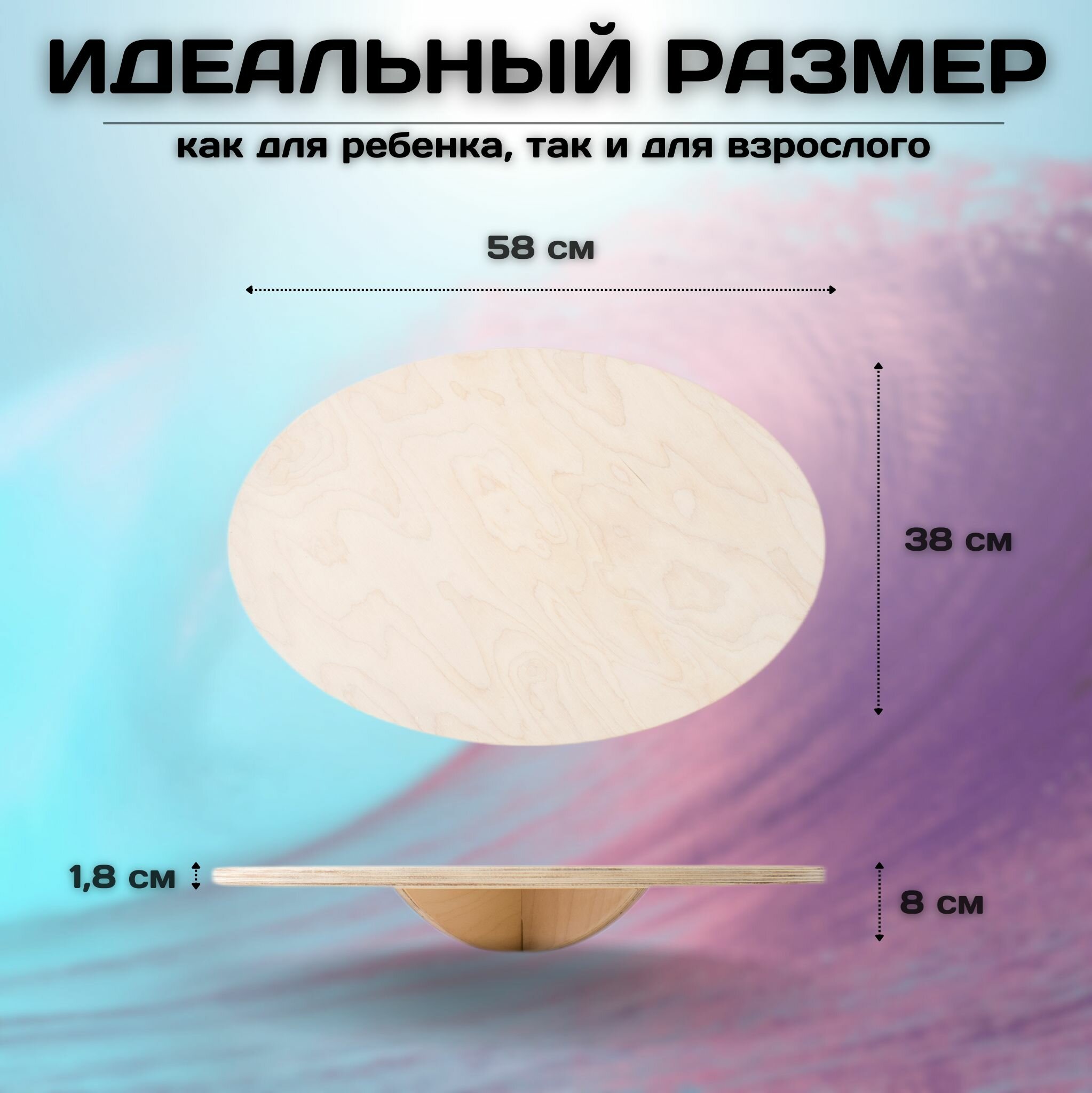 Баланс борд деревянный для детей и взрослых, шлифованный (размер 58х38 см) информация: