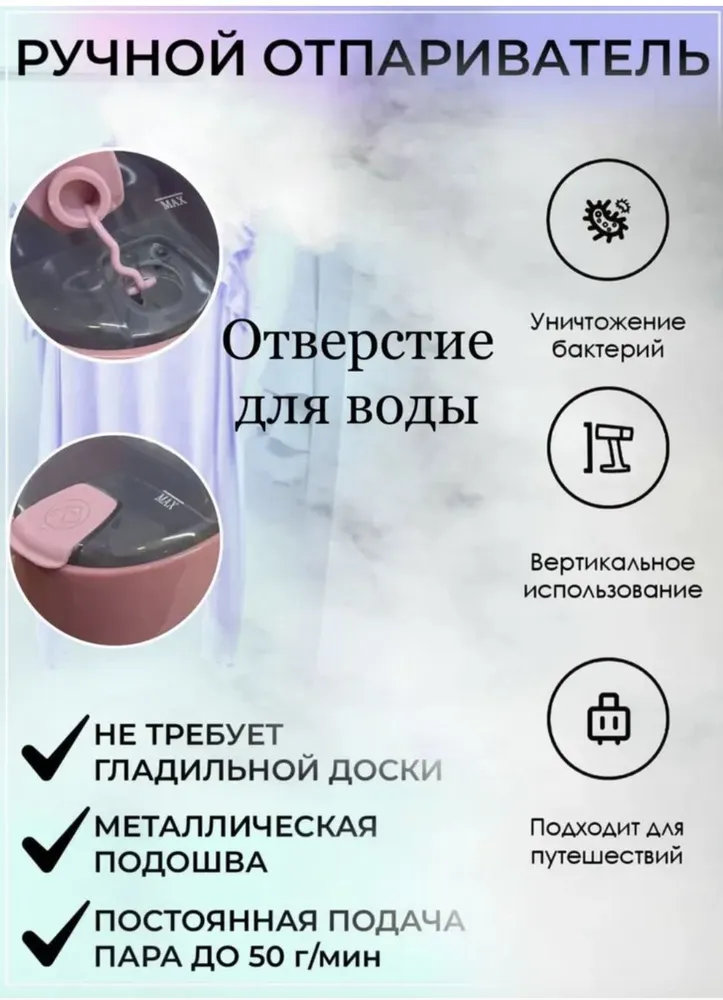 Отпариватель ручной складной / отпареватель для одежды и мебели / Strong steam1470W pink информация: