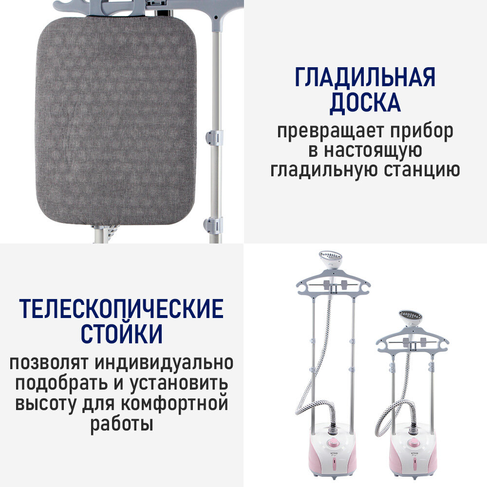 Вертикальный напольный отпариватель STINGRAY ST-ST300A белый/розовый информация:
