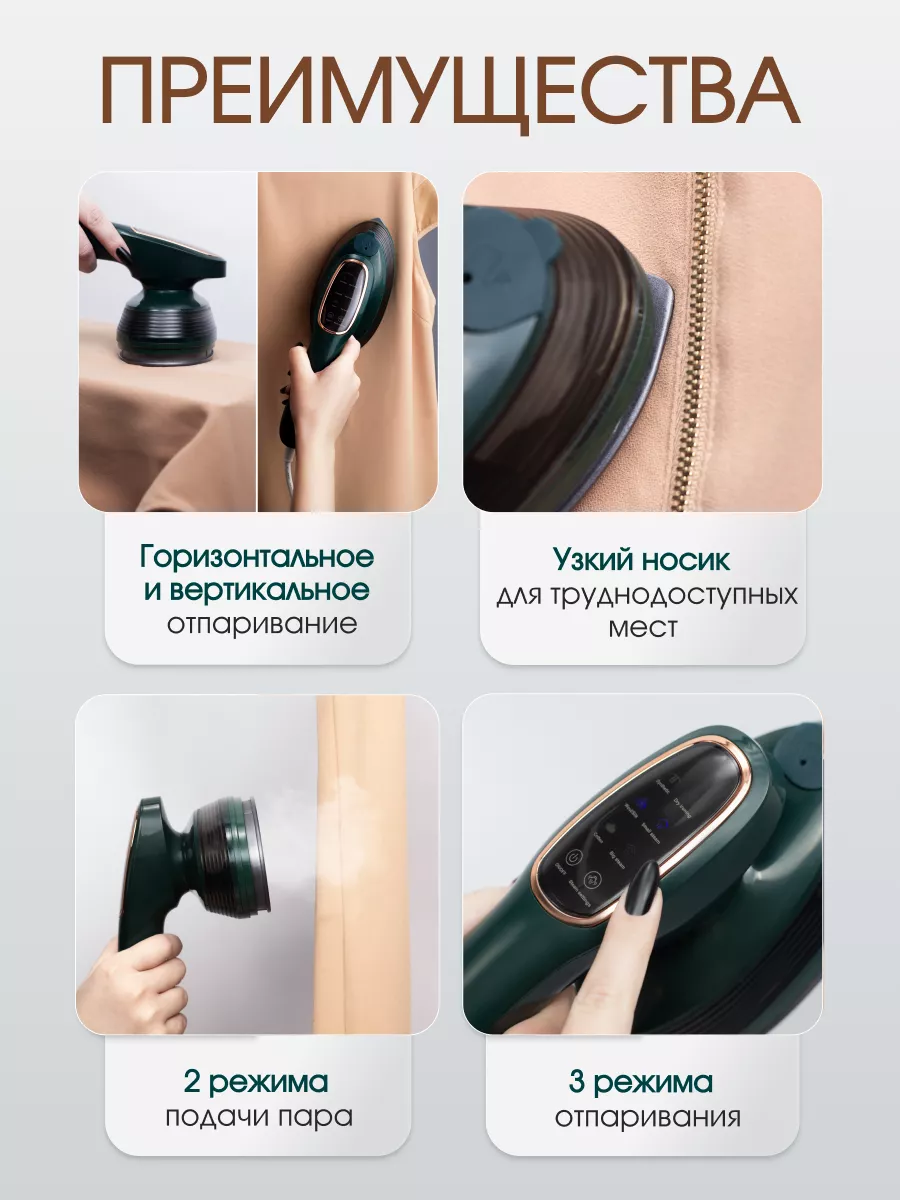 Отпариватель ручной для одежды вертикальный и горизонтальный Феликс мощный, дорожный мини утюг бежевый