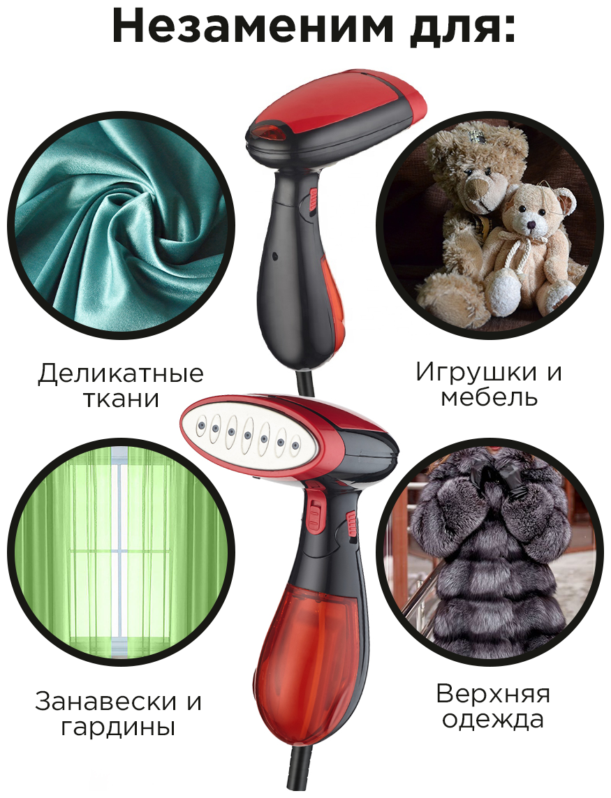 Отпариватель ручной MAGNUS, со складной ручкой, с насадкой-щеткой, мощность 1500 Вт, резервуар 130 мл, красно-черный информация: