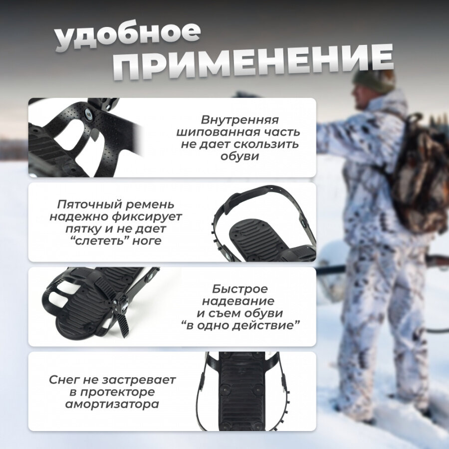 Крепления для охотничьих лыж Маяк Вятка полимерные с амортизатором и пяточным ремнем информация: