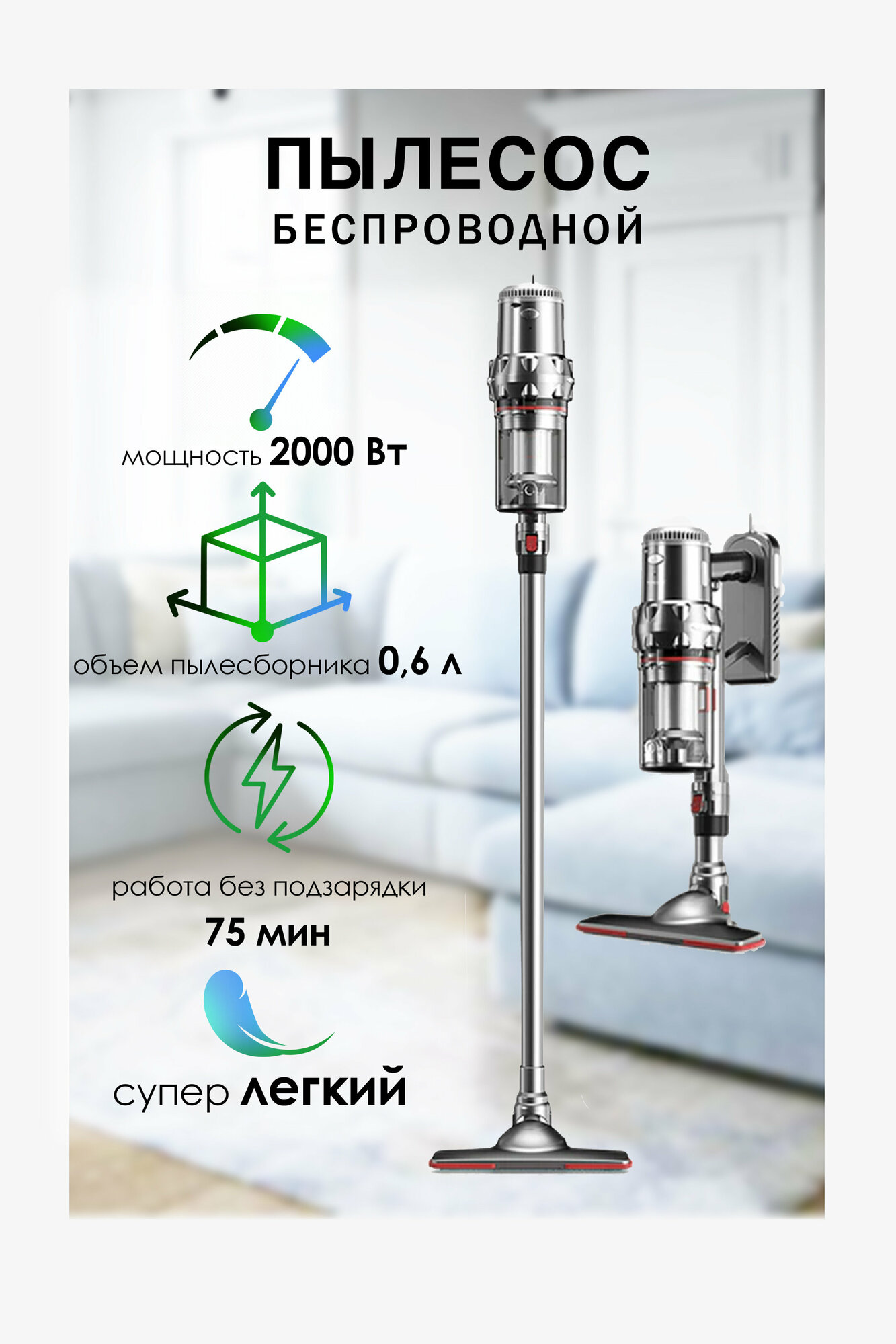 Беспроводной пылесос, вертикальный ручной с контейнером,для уборки дома,офиса,телескопическая труба,с защитой от перегрева,2000ВТ, информация: