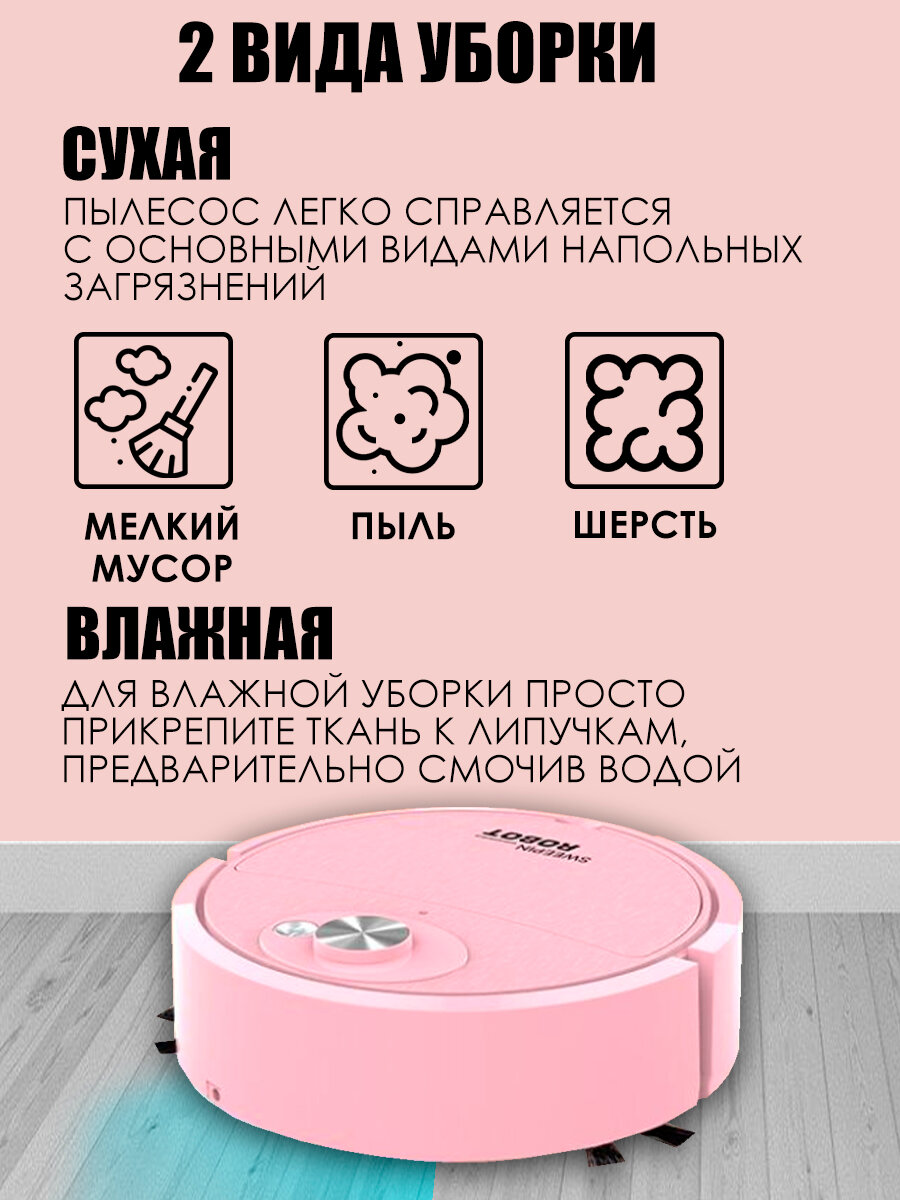 Робот-пылесоc с влажной и сухой уборкой. Умный робот пылесос моющий, беспроводной, аккумуляторный, мощный. Vacuum mop dry and wet