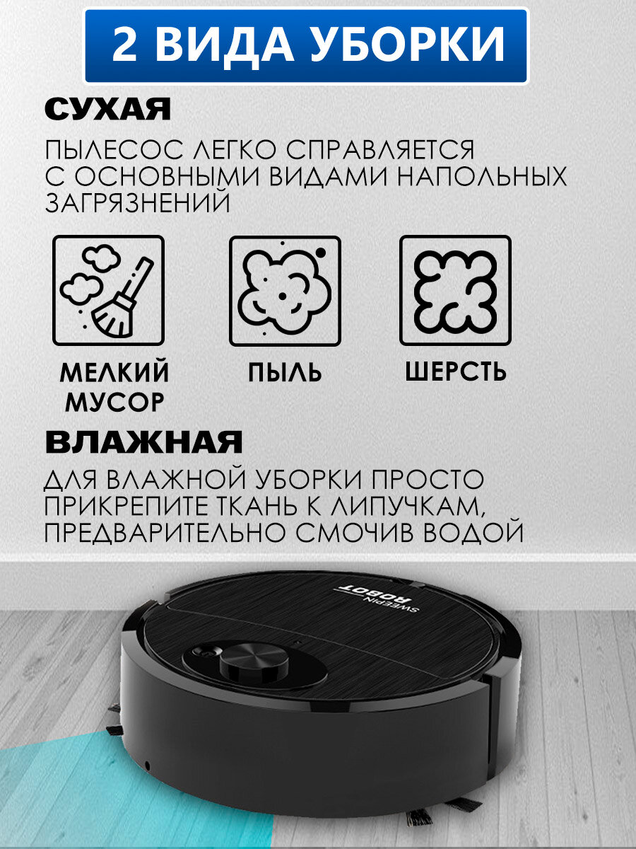 Робот-пылесоc с влажной и сухой уборкой. Умный робот пылесос моющий, беспроводной, аккумуляторный, мощный. Vacuum mop dry and wet