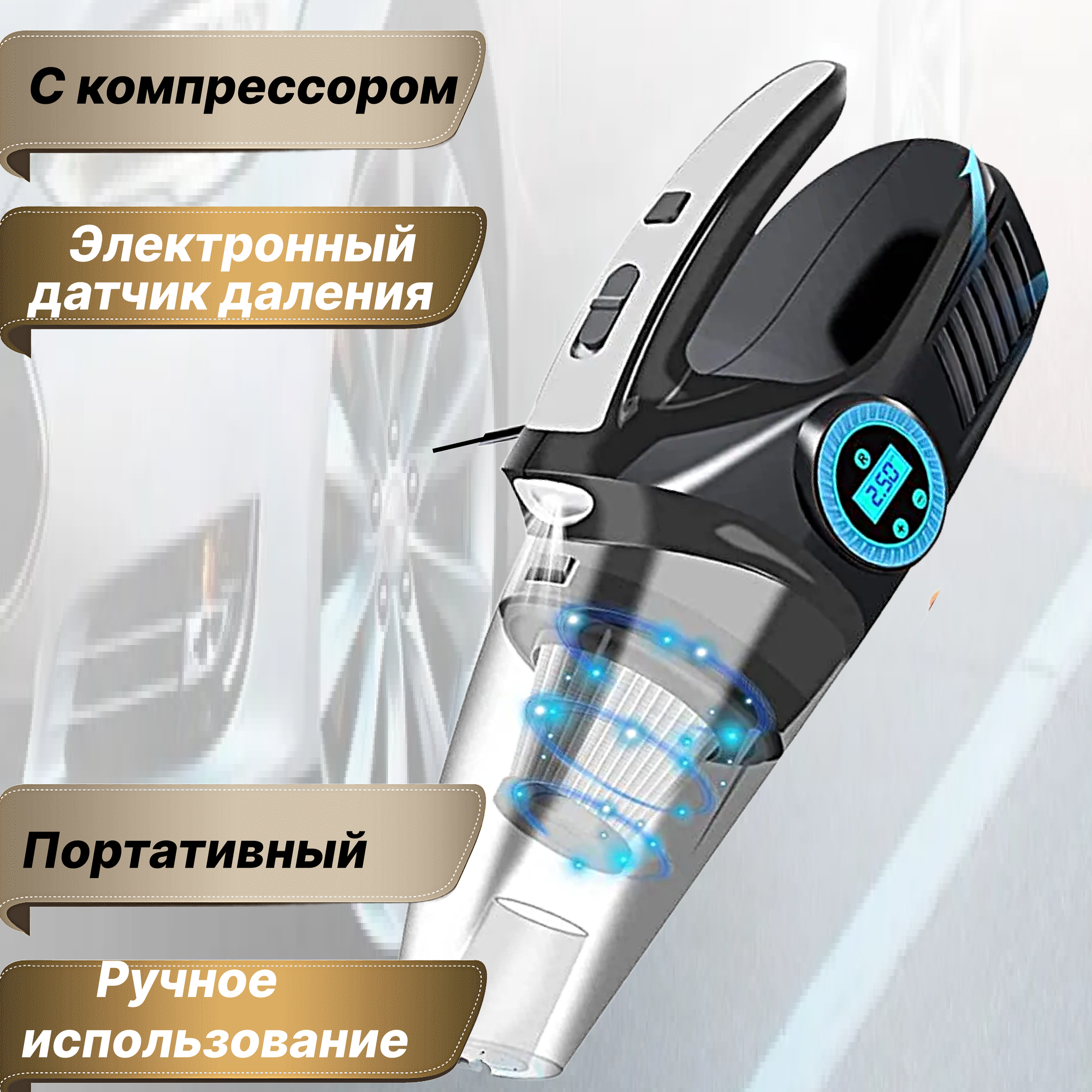 Автомобильный пылесос с подсветкой / Мощный пылесос Proliss с компрессором/ Ручной Насос автомобильный с манометром информация: