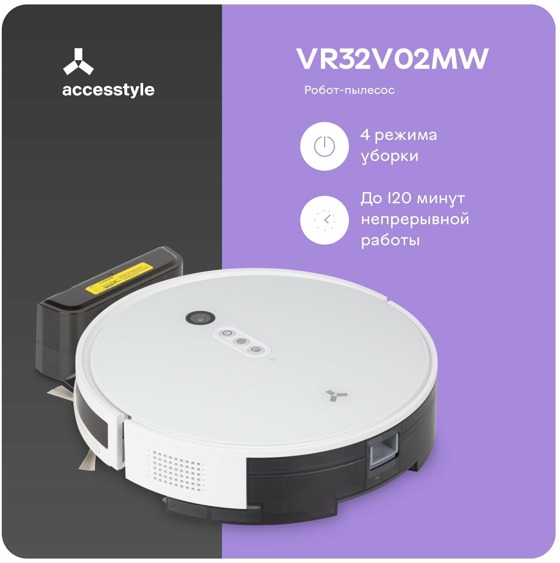 Робот-пылесос Accesstyle VR32V02MW сухая и влажная уборка, белый информация: