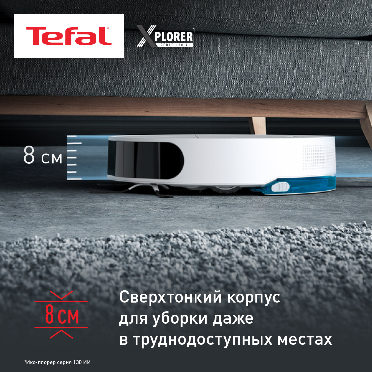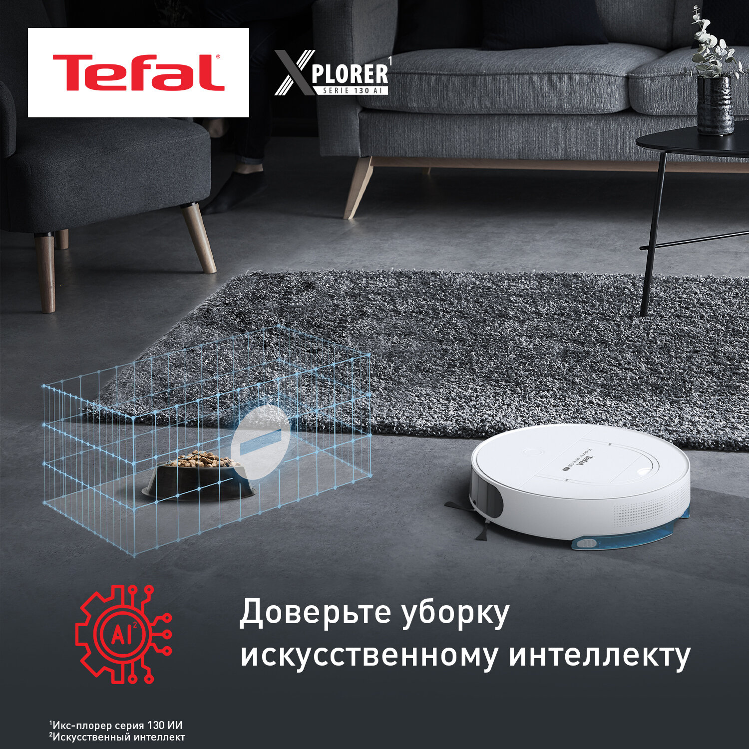 Робот-пылесос Tefal X-Plorer Serie 130AI Animal & Allergy RG9077WH работает с Алисой, с сухой и влажной уборкой, белый информация: