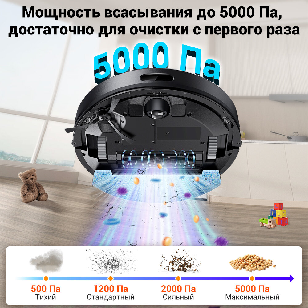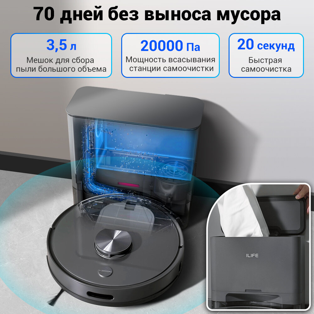 Робот пылесос с влажной и сухой уборкой ILIFE T20S, с лазерной навигацией LDS и станцией самоочистки, 5000 Па, управление с помощью приложения информация: