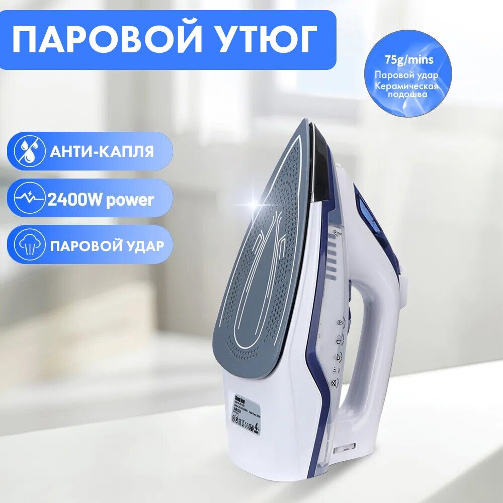 Домашний утюг паровой, с функцией вертикальной глажки, паровой удар, антипригарное покрытие, система самоочистки, 2600ВТ