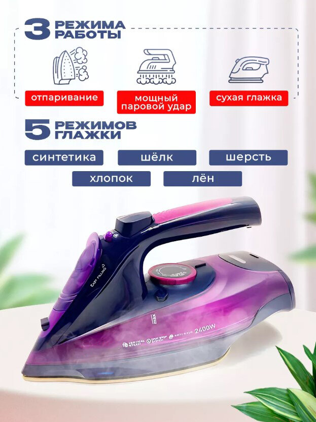 Отзывы на Утюг беспроводной, с функцией вертикальной глажки, паровой удар,домашний,антипригарное покрытие, система самоочистки,2500Вт, зеленый