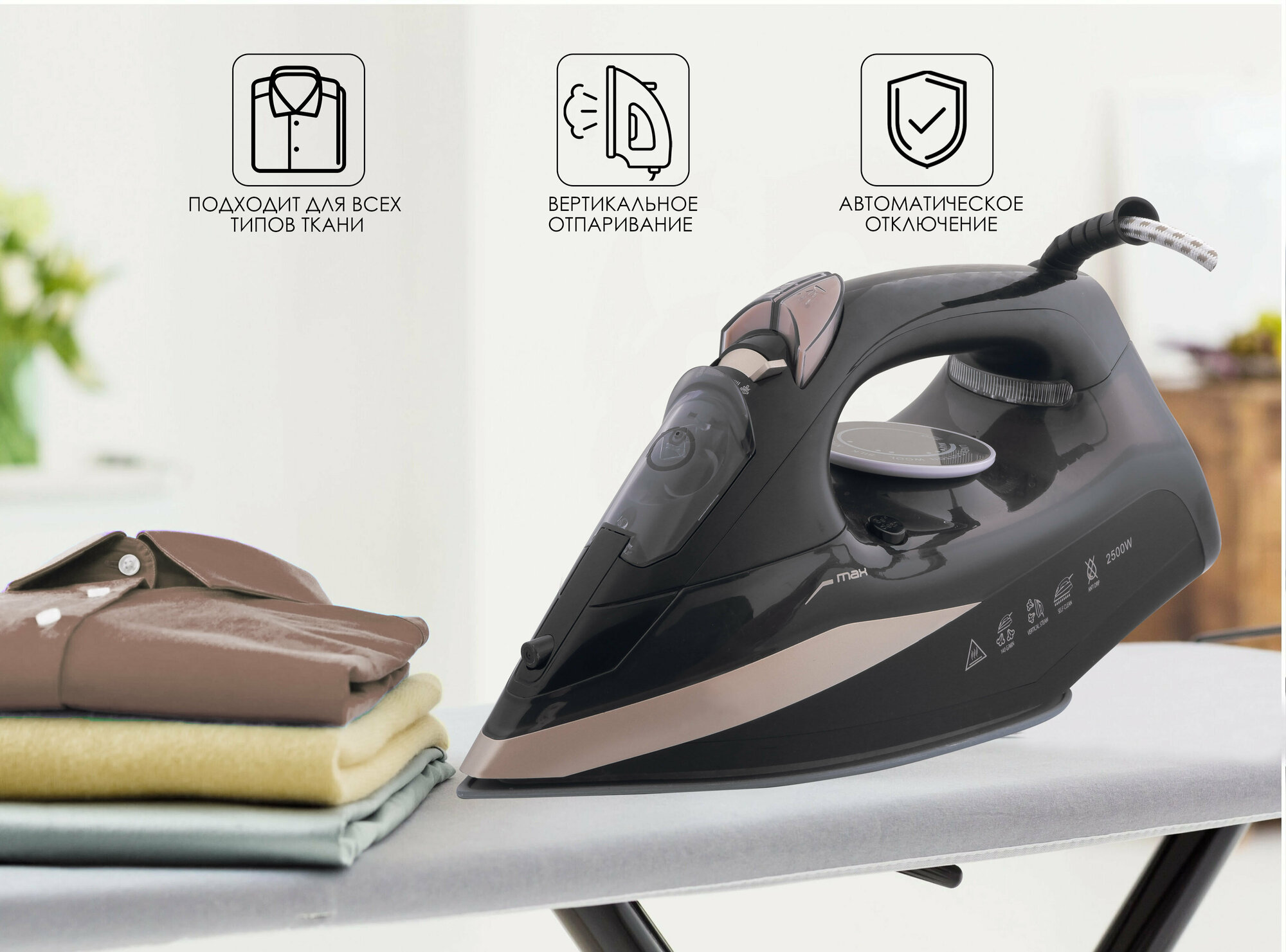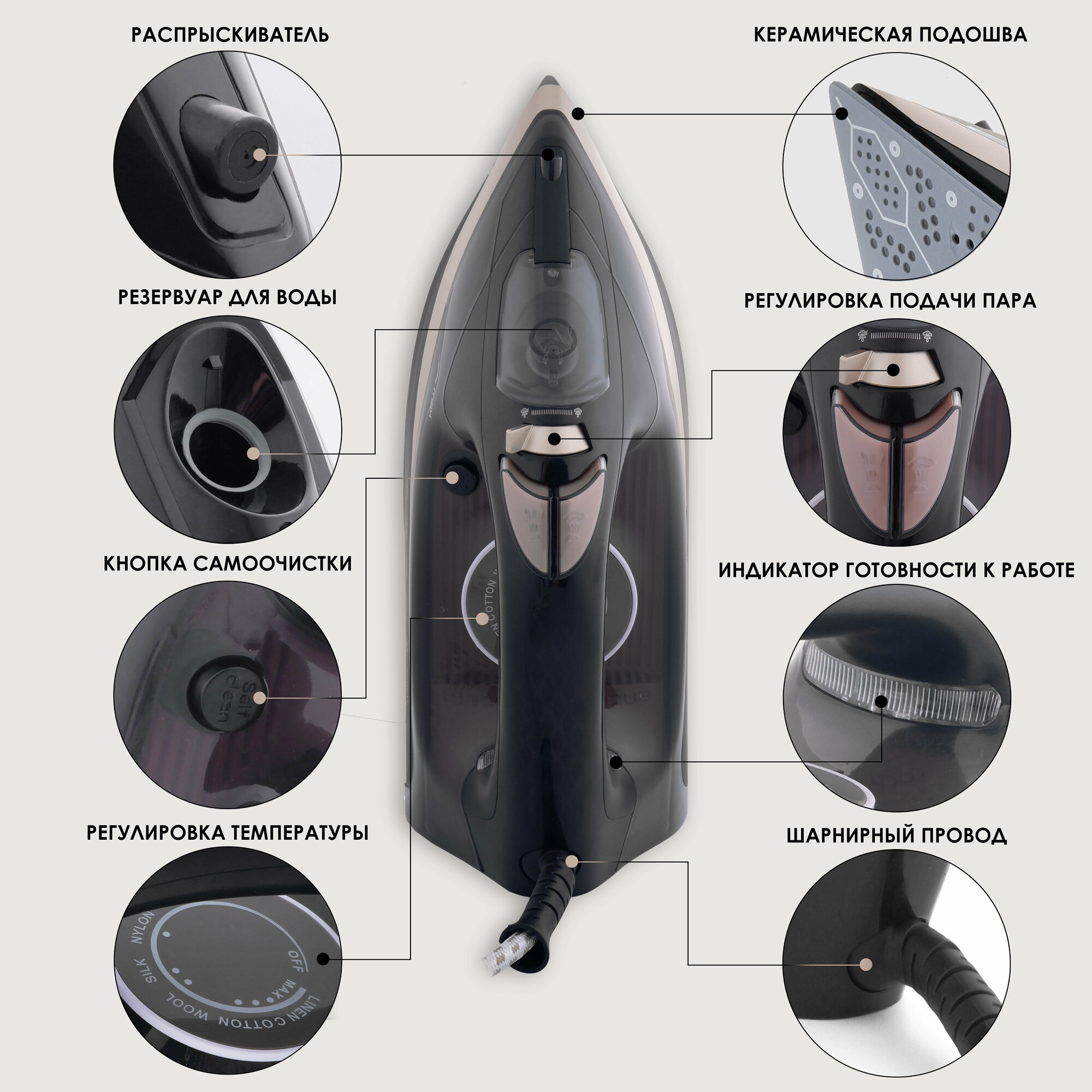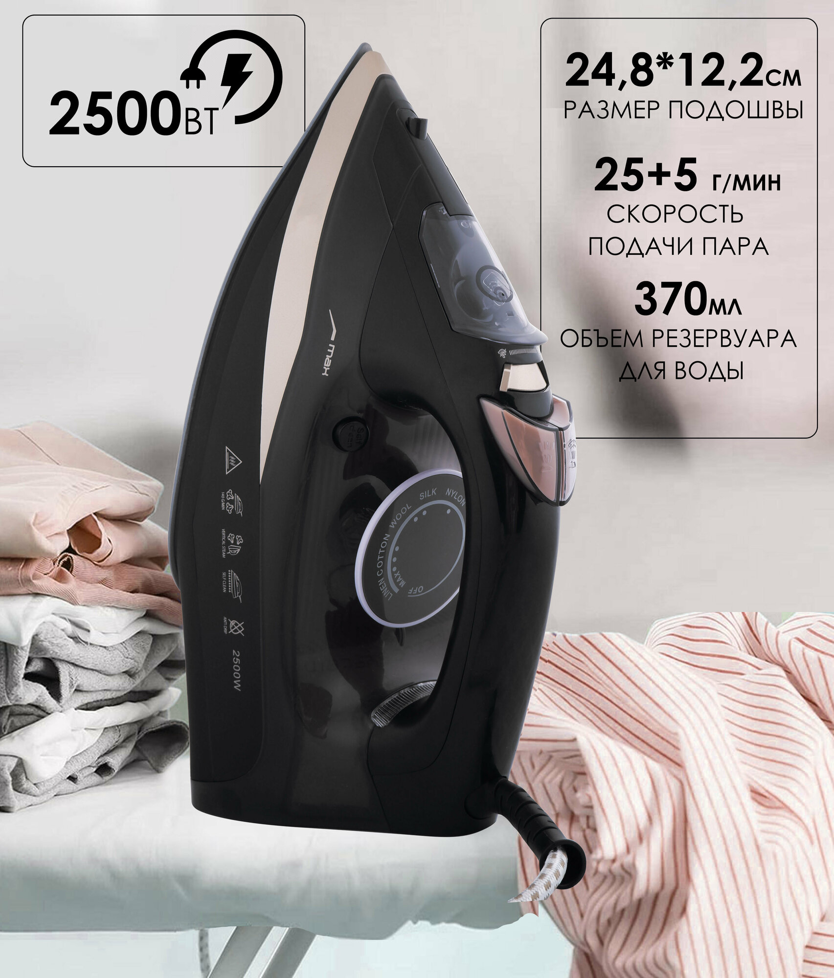 Домашний утюг проводной, электрический, черный, с антипригарным покрытием, вертикальная глажка, система самоочистки,2500Вт информация: