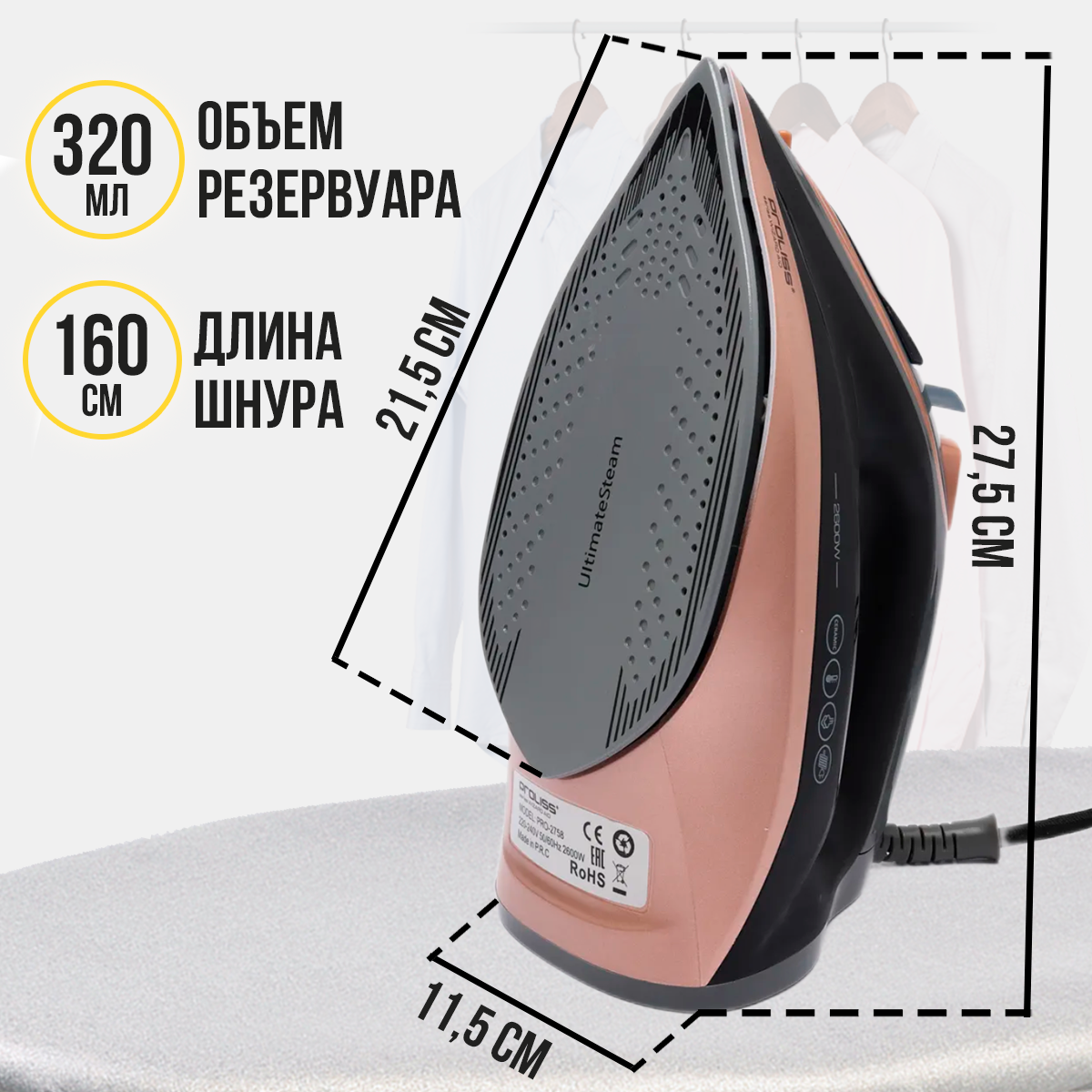 Утюг паровой для одежды 2600 Вт информация: